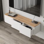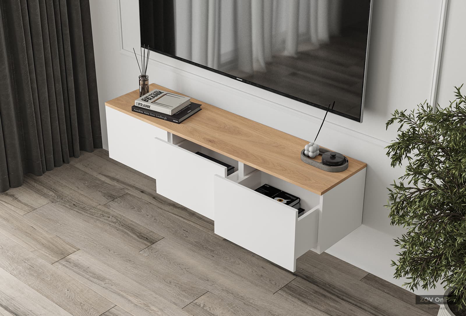 Piekarināms TV statīvs Lora‑2 (balts/medusozols, platums 1500 mm)