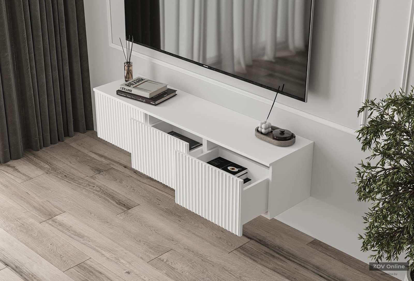 Piekarināms TV statīvs Lora‑21 (balts, platums 1500 mm)