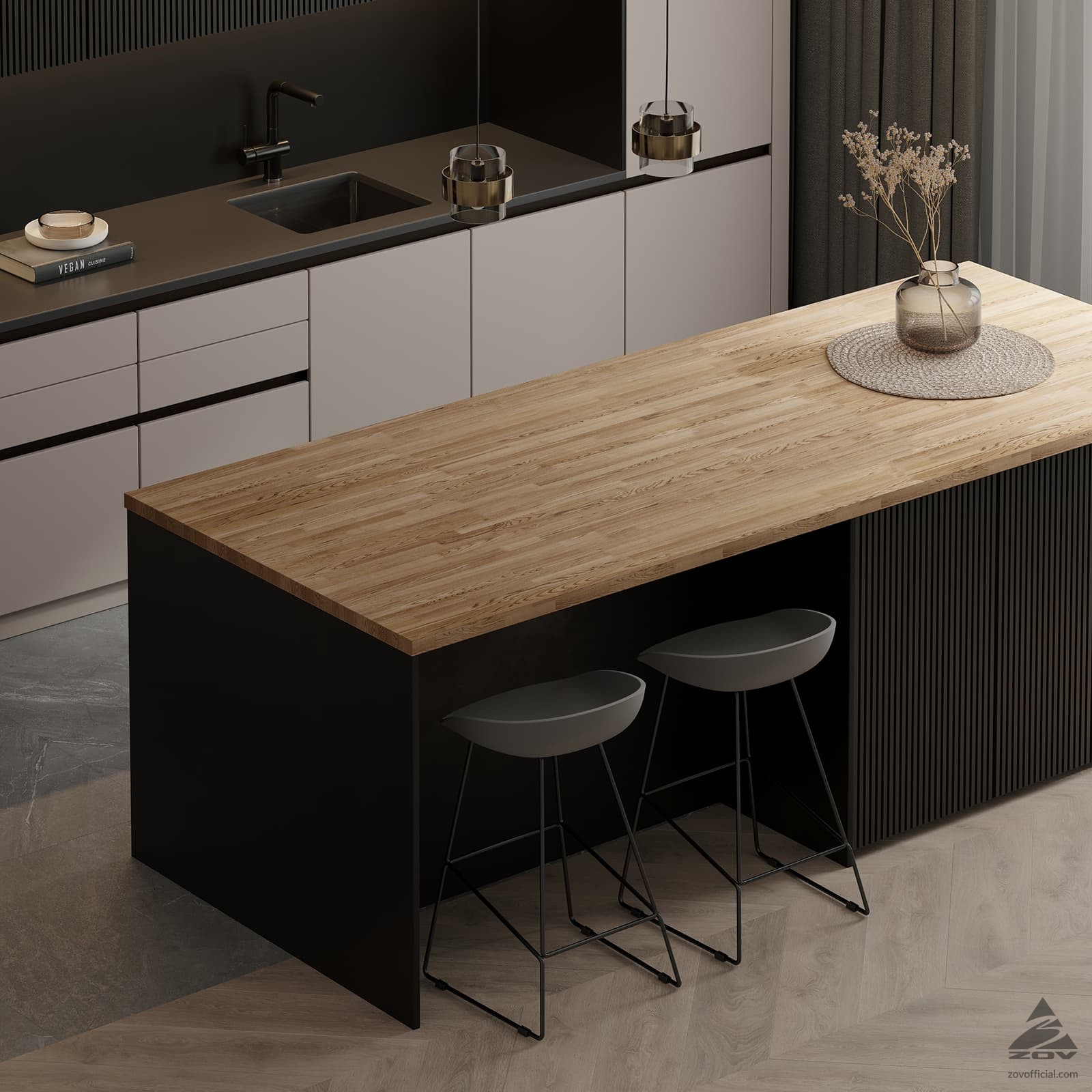 Столешницы изготавливаются из отдельных цельных элементов, срощенных по длине с помощью открытого микрошипа и склеиваемых между собой по ширине.