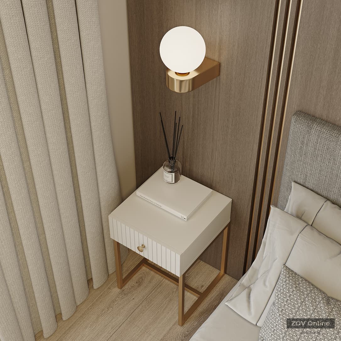 ФАСАДЫ Крашеная МДФ (фрезеровка прямая), цвет RAL 9003 (Белый Глянец) КАРКАС ВЫДВИЖНОГО ЯЩИКА ЛДСП 18 мм, цвет Белый НОЖКИ Металл, цвет RAL 1036 (полимерная матовая краска)