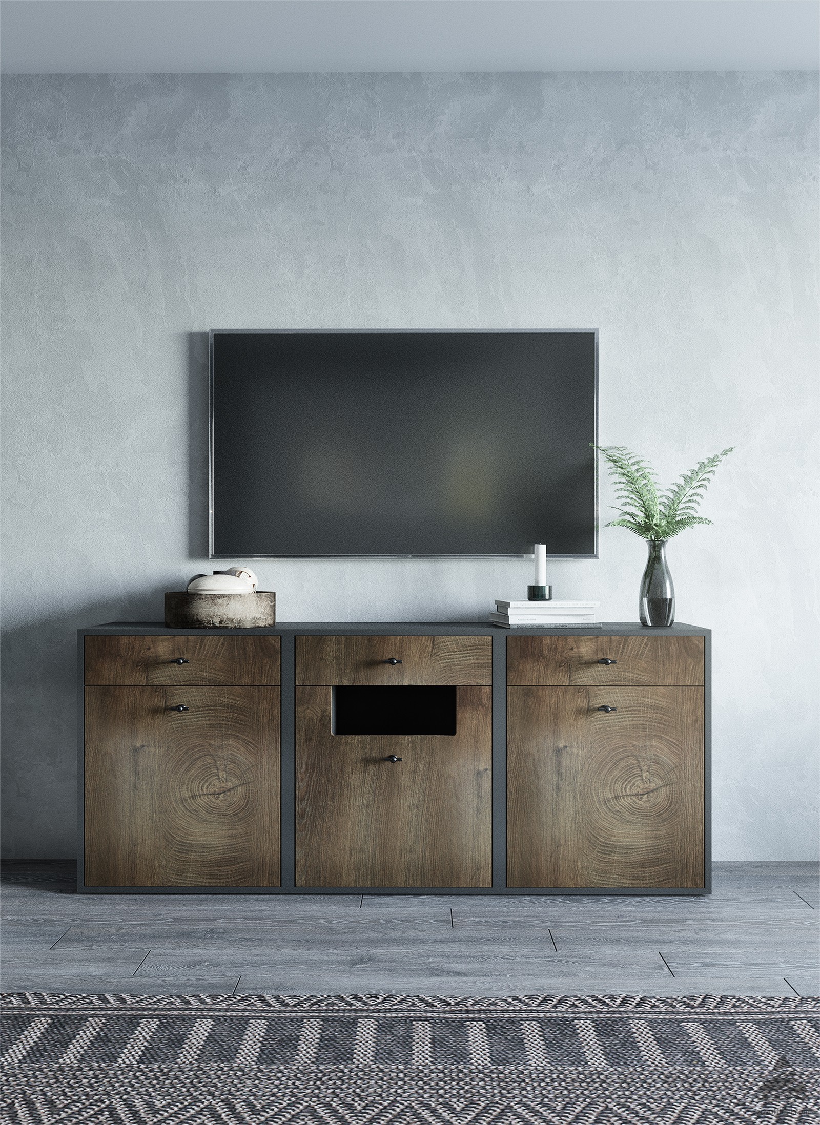MATERIAL MDF / PVC Oak Cognac Syncro, Chipboard Graphite
