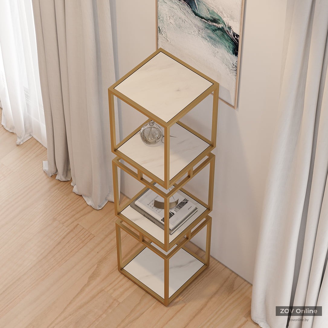 SHELVES Chipboard 18 mm, Levanto Marble White FRAME Metal, RAL 1036 color (matte polymer paint)