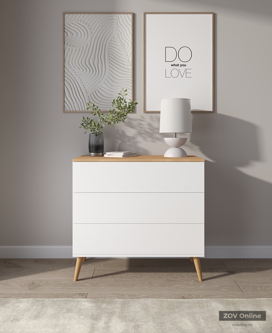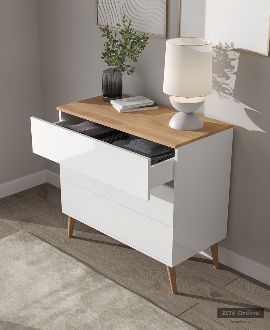 Chest of drawers Elm‑4 (Gloss White / Honey Oak)