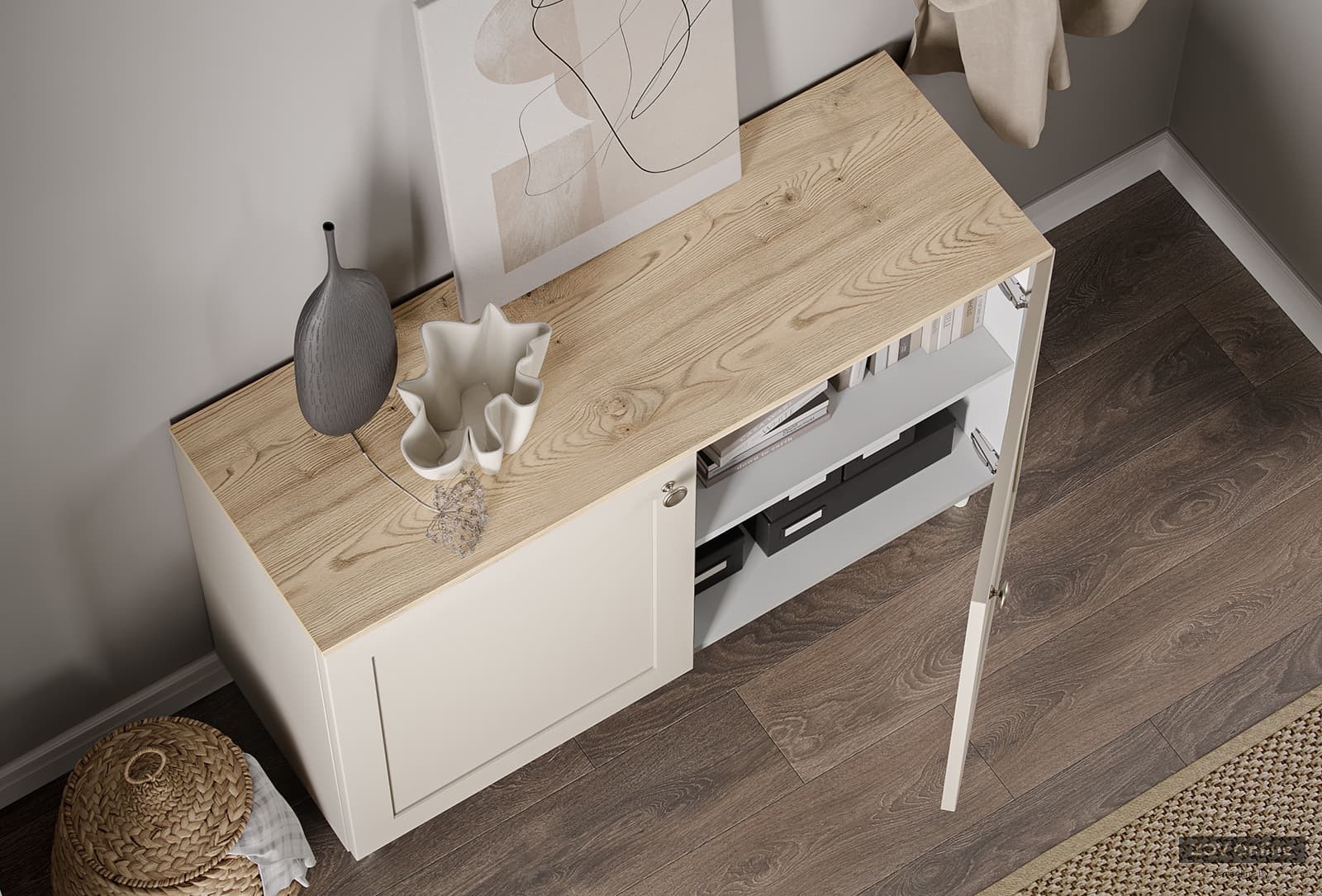MATERIAL MDF / PVC 22 mm, Taupe Gray / Chipboard 18 mm, Chestnut Sand / Premium White