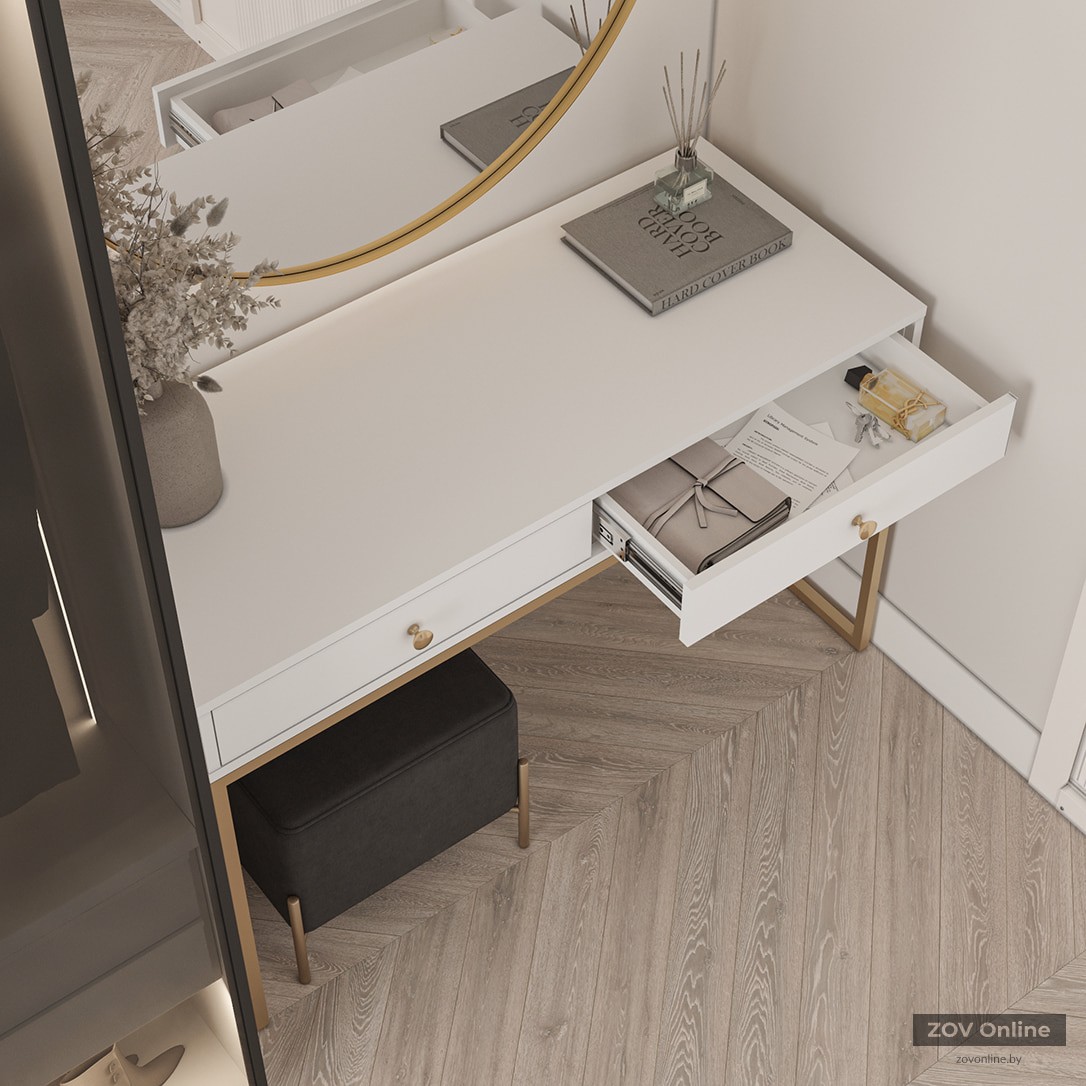 FRONTS Painted MDF, RAL 9003 (White Matt) DRAWER FRAME Chipboard 18 mm, White LEGS Metal, RAL 1036 (matt polymer paint)