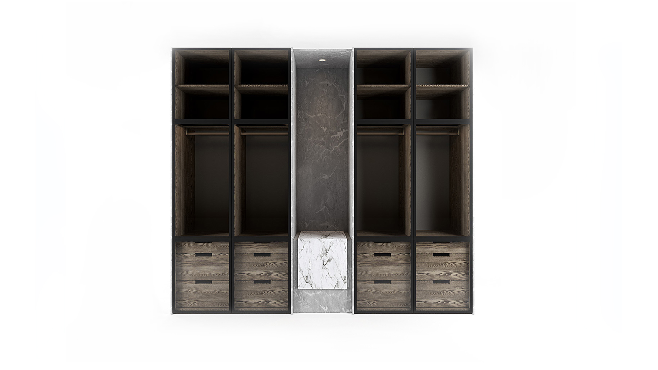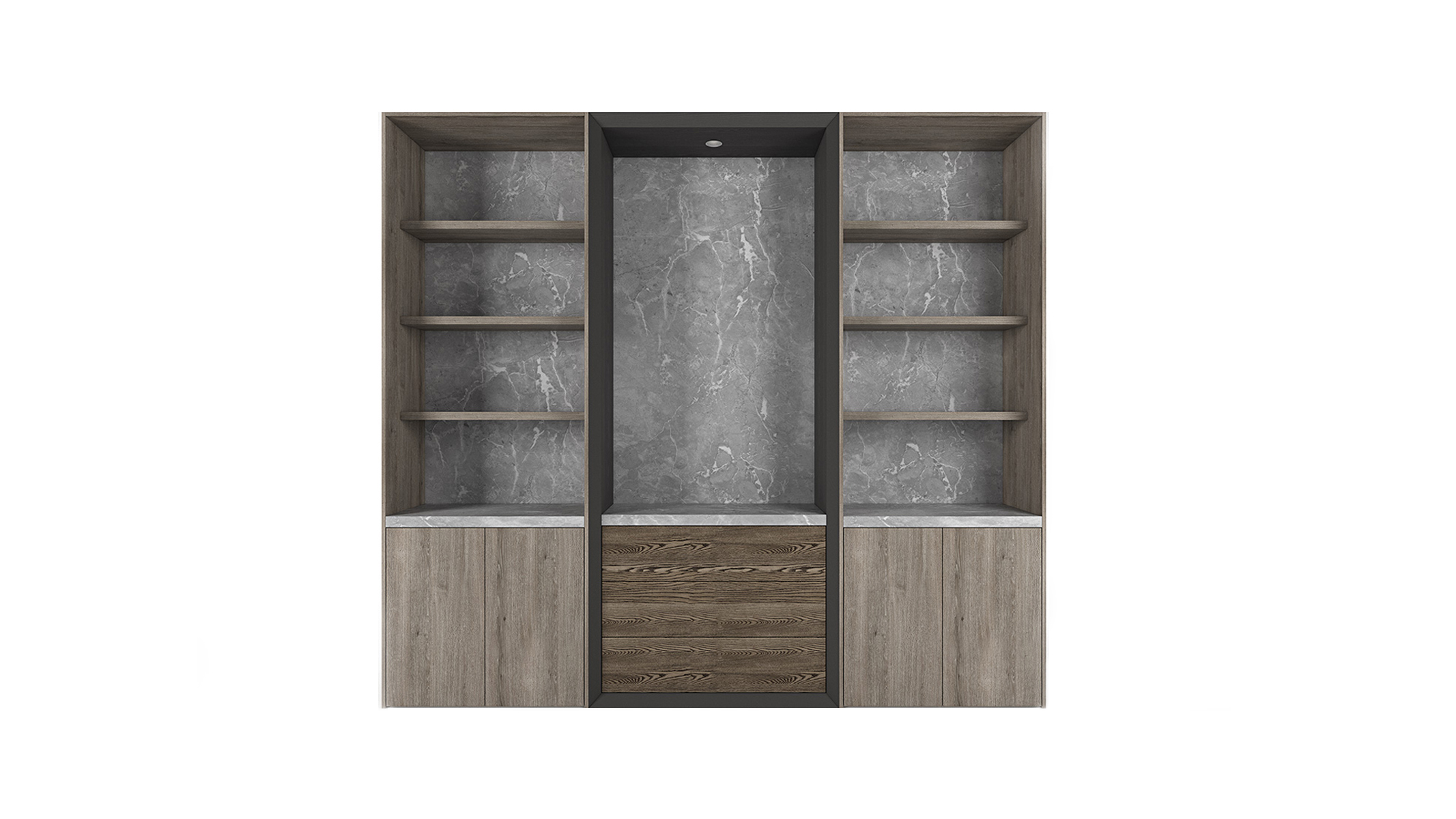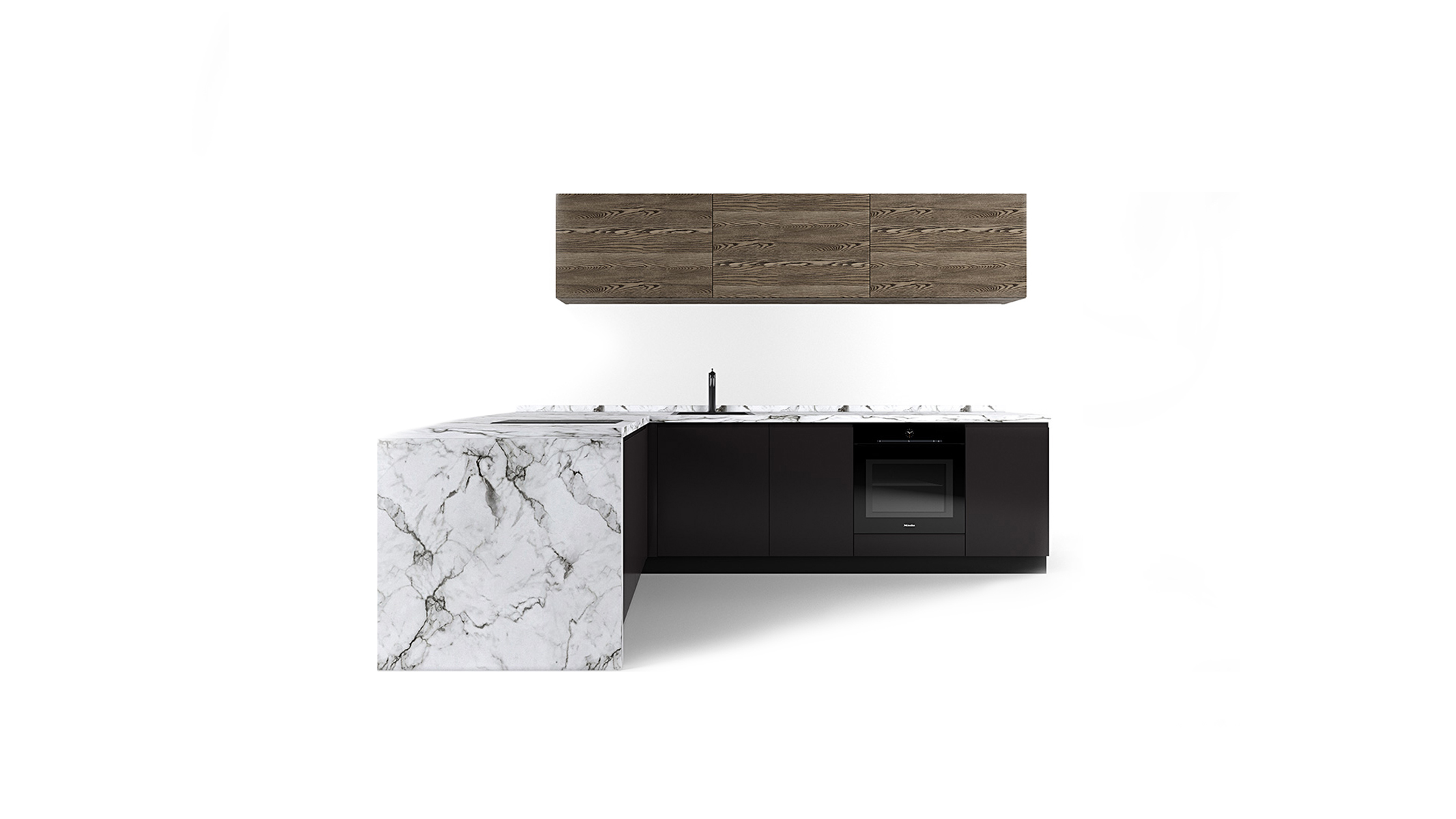 MATERIAL Painted MDF NCS S 8500-N Gloss / NCS S 5500-N Matt / NCS S 0300-N Matt, ash veneer Paraffin oil blend Chestnut / NCS S 7500-N, MFC Brown Orleans Oak*, HPL plastic Marble, HPL Light Gray Valmasino Marble