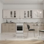 FRONTS Longford (MDF / PVC foil) 19 mm, decor Antique White / Satin Beige FRAMES Chipboard 18 mm, decor White Premium, back panel 4 mm fiberboard (color White) TOP HPL plastic 38 mm, decor Ceramic Tessina ( postforming); wall edge in color + end caps