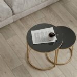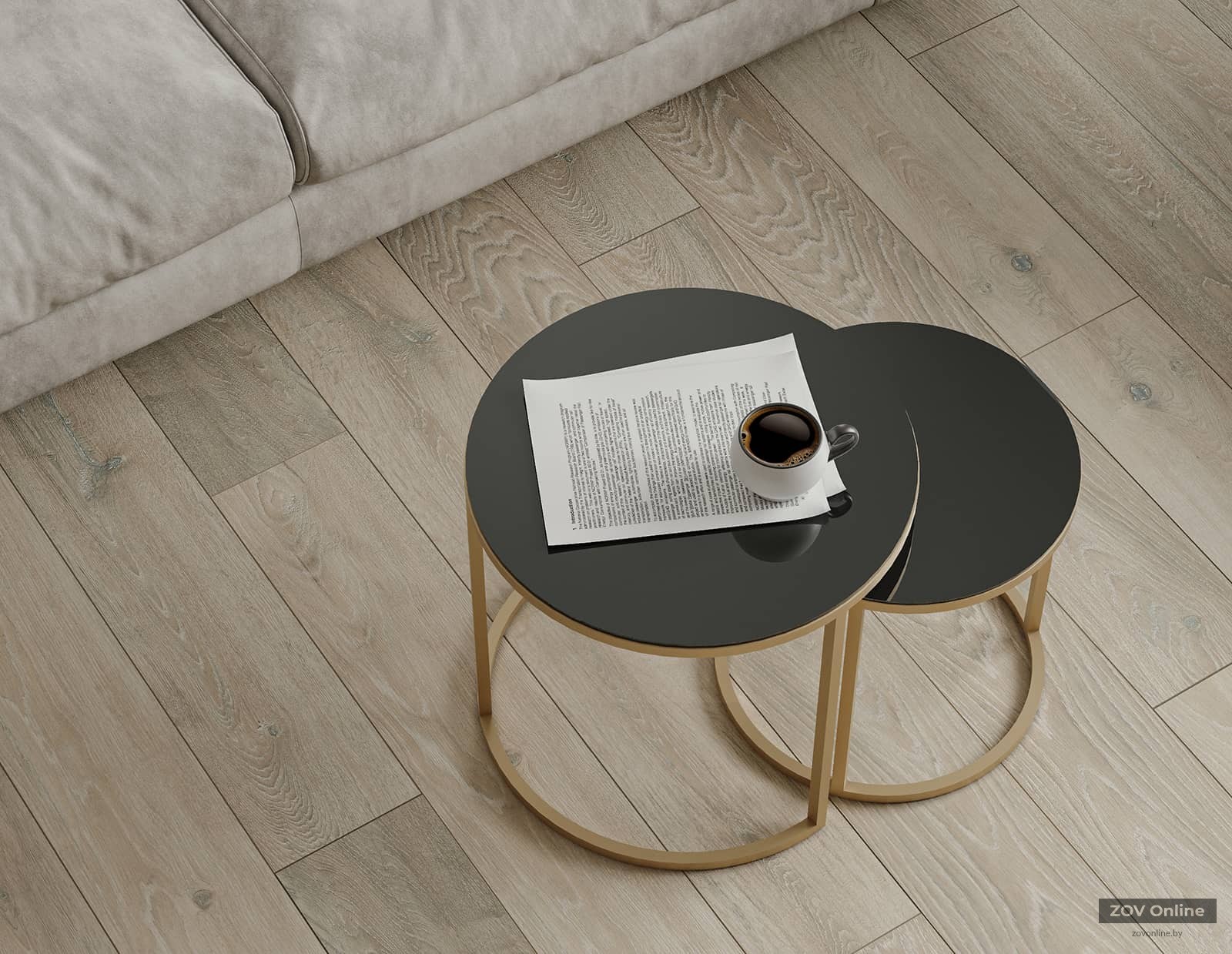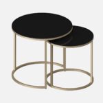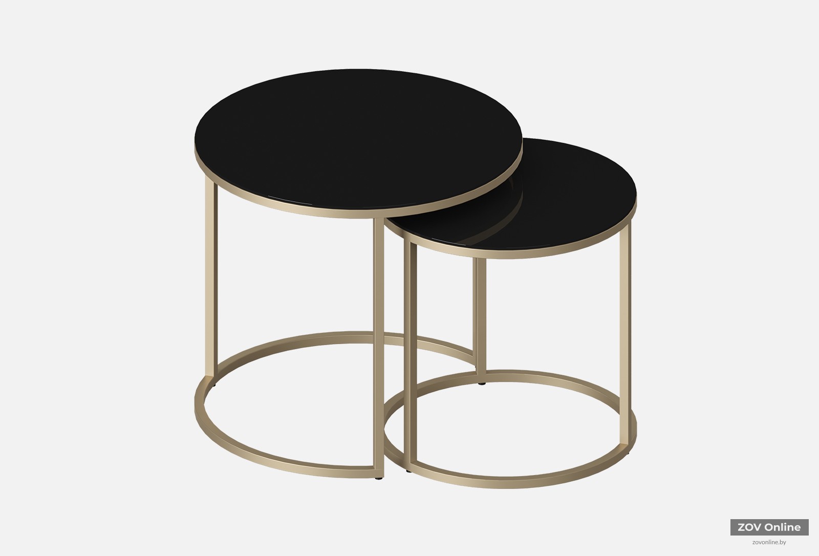TOP Small table: 4 mm Lacobel glass, Black. Large table: Lakobel glass 4 mm, Black color FRAME Metal, RAL 1036 color (matte polymer paint)
