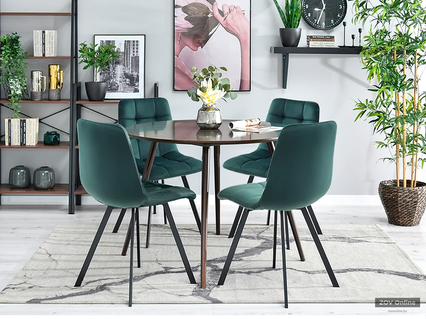UPHOLSTERY Dark green velor LEGS Black metal