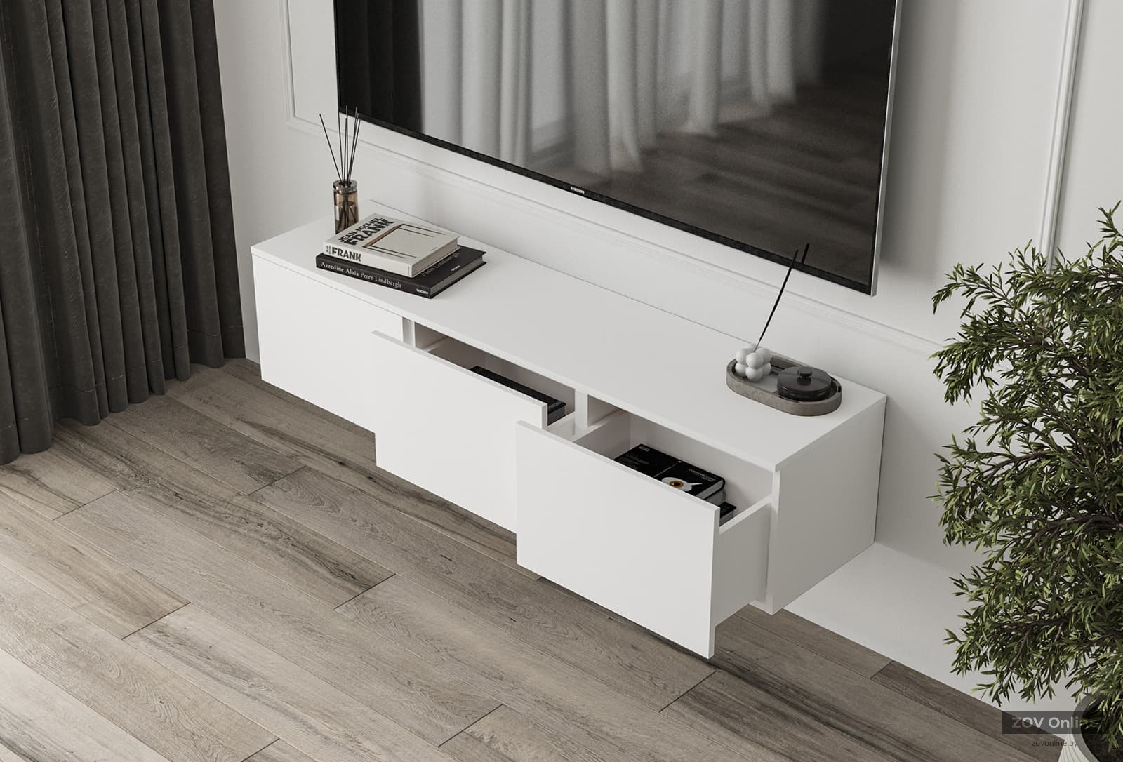 Hanging TV stand Lora‑1 (White color, width 1500 mm)