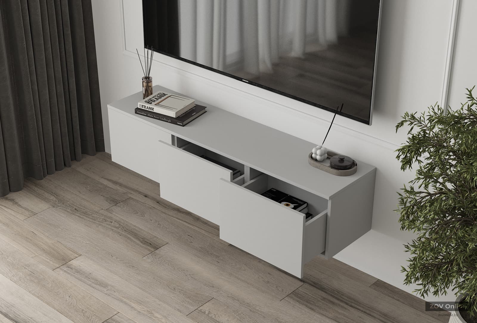 Hanging TV stand Lora‑3 (Stone Gray color, width 1500 mm)