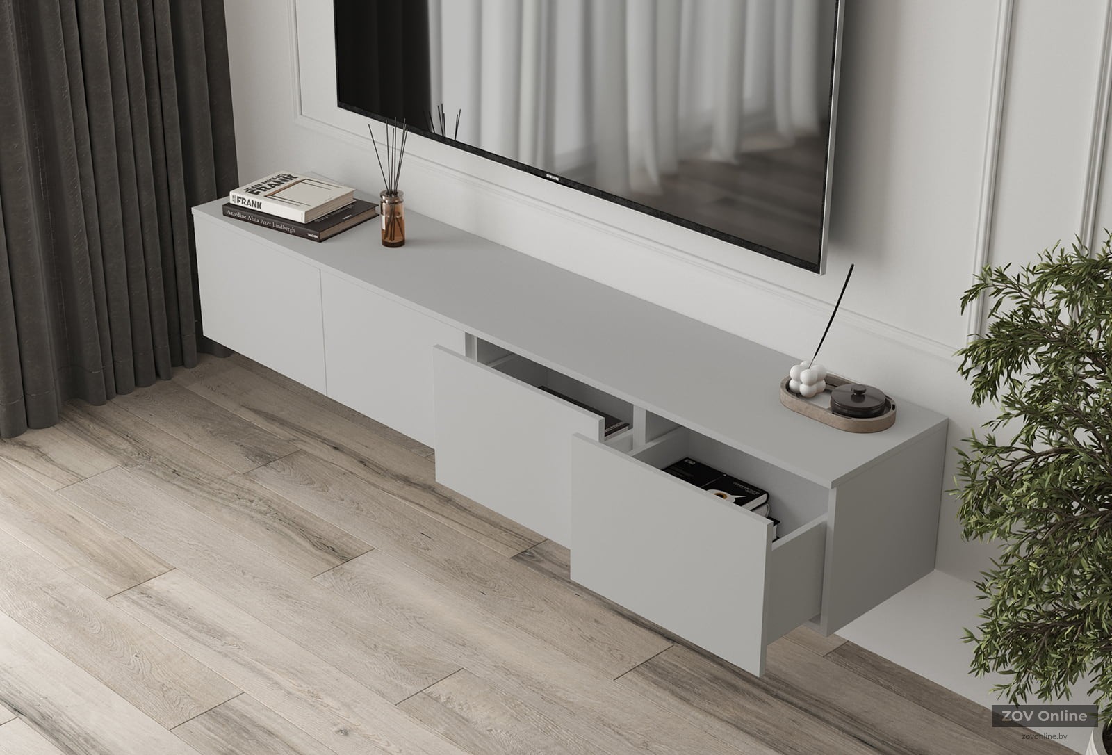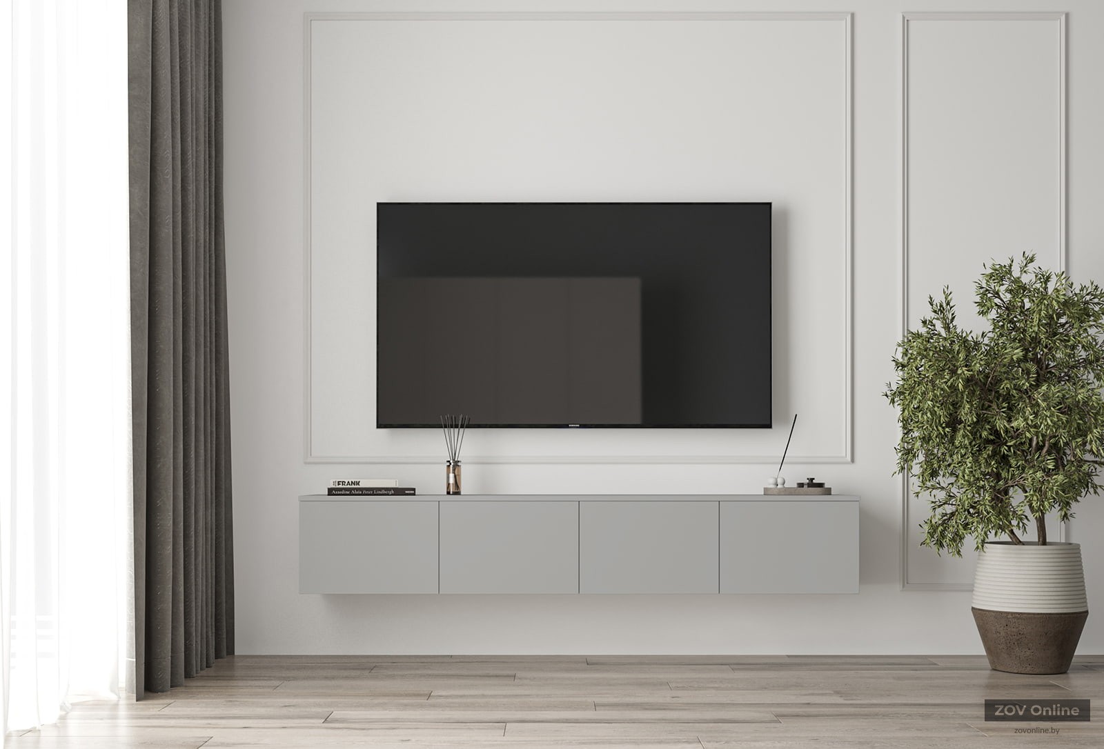 Hanging TV stand Lora‑9 (Stone Gray color, width 2000 mm)