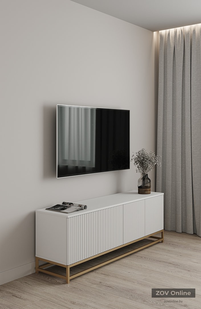FRONTS Painted MDF (milled "Wave"), color RAL 9003 (White Matt) LEGS Metal, color RAL 1036 (matte polymer paint)
