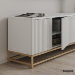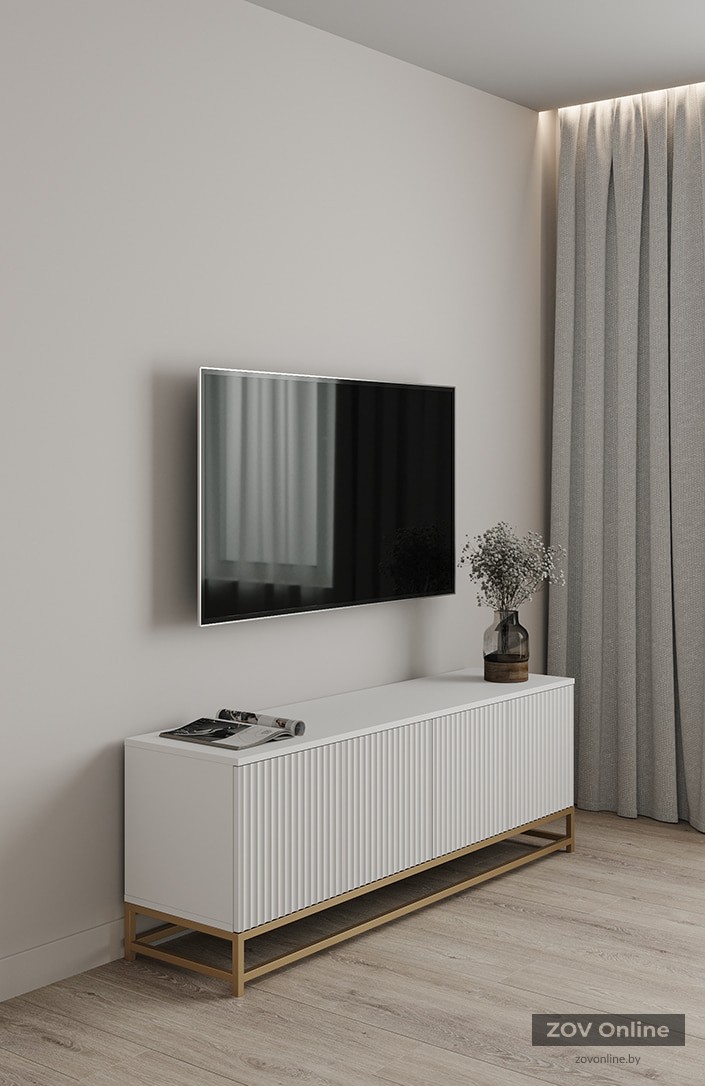 FRONTS Painted MDF (milled "Wave"), color RAL 9003 (White Gloss) LEGS Metal, color RAL 1036 (matte polymer paint)