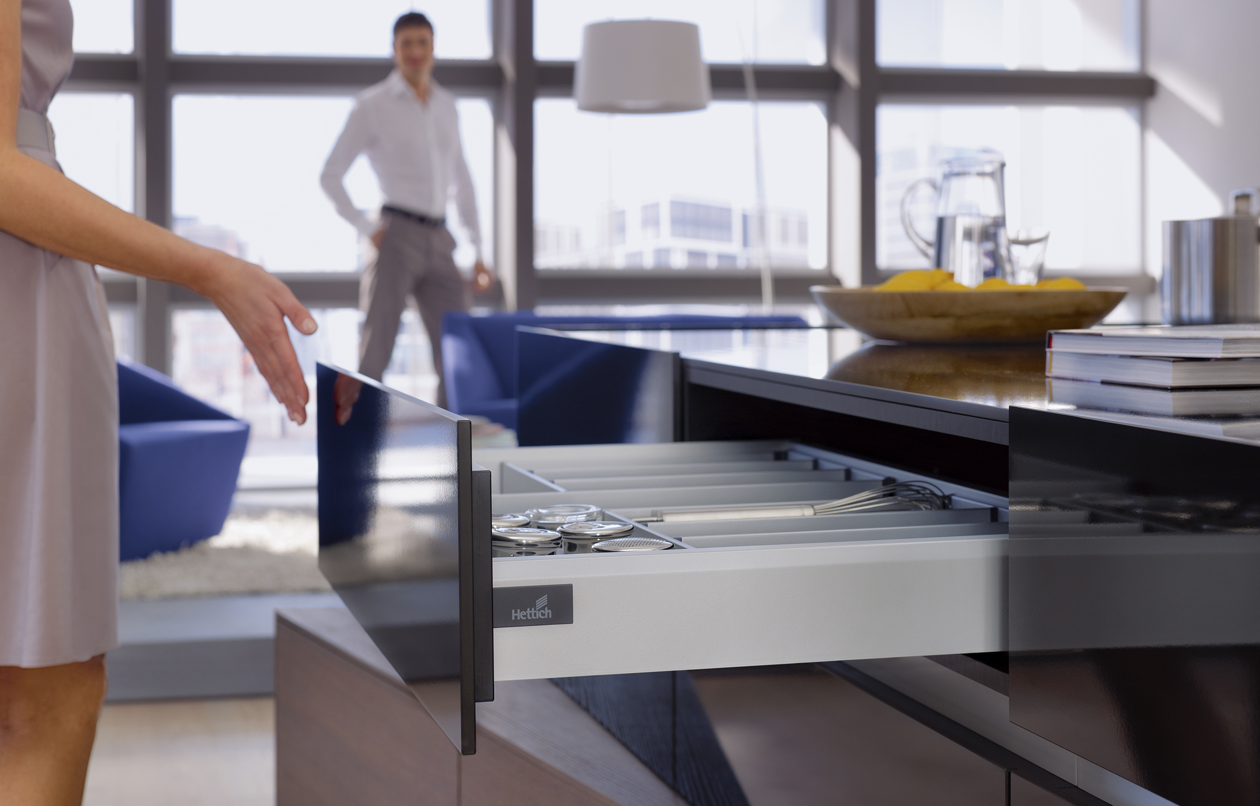 ArciTech atvilktņu atvēršanas mehānisms ar vienu pieskārienu, klusa un vienmērīga aizvēršanās.