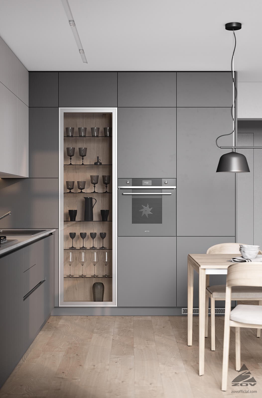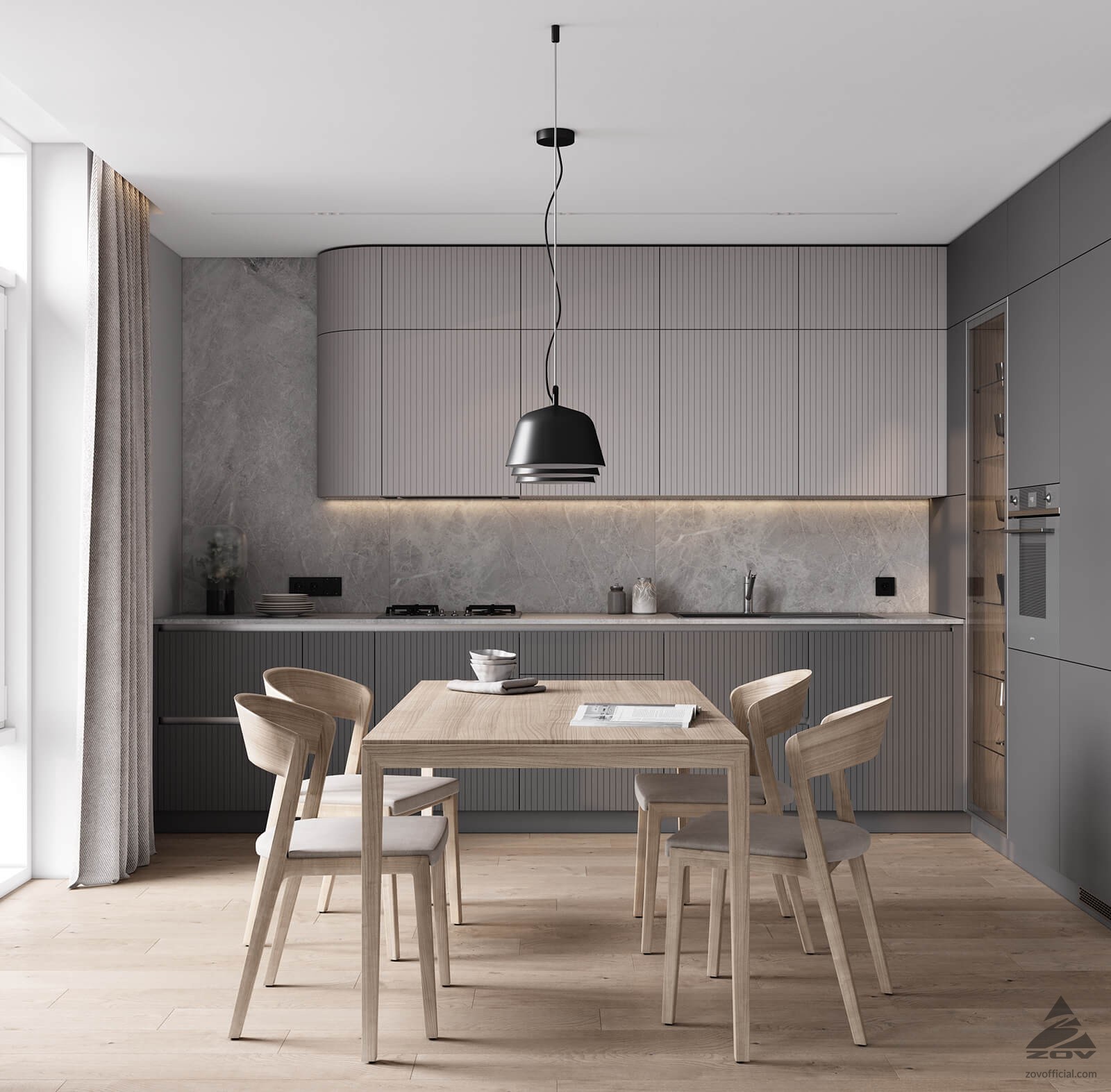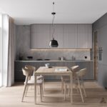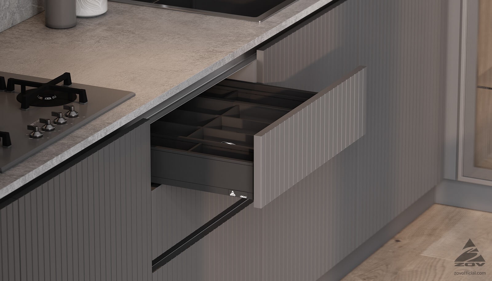 PRIEKŠĒS Aurora (krāsots MDF), krāsa NCS S 2502-R matēta / NCS S 5000-N matēta DARBA VIRSMA HPL plastmasa, 20 mm, dekors Chromix Silver