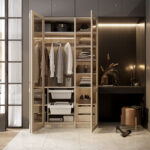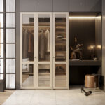 RĀMIS, AIZMUGURĒJSIENA, PLAUKTI, ATvilktnes Kokskaidu plātnes Sonoma Ozols FRONTS Livon (MDF/PVC), krāsa NCS S 3005-Y50R (Phoenix Bronze stikls)