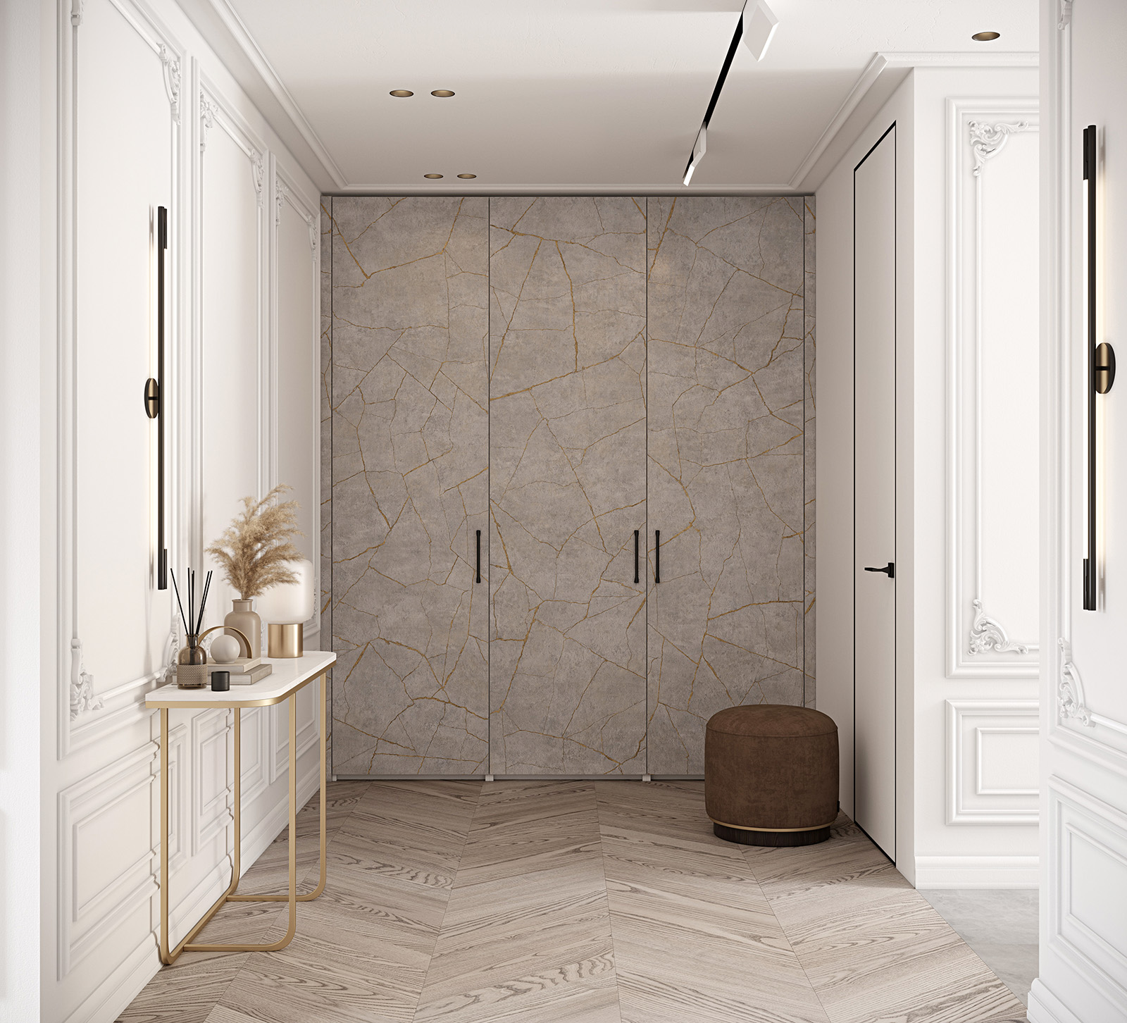 RĀMIS, AIZMUGURĒJSIENA, PLAUKTI, ATvilktnes Skaidu plātnes Balta Premium/Balta FRONTS Syncron Venato Beige