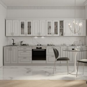 Кухня Лонгфорд 3,55‑2 (Белый Супермат / Сильвер)