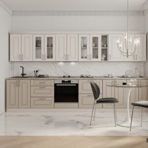 Кухня Лонгфорд 3,55‑2 (Античный Белый / Сатин Бежевый)