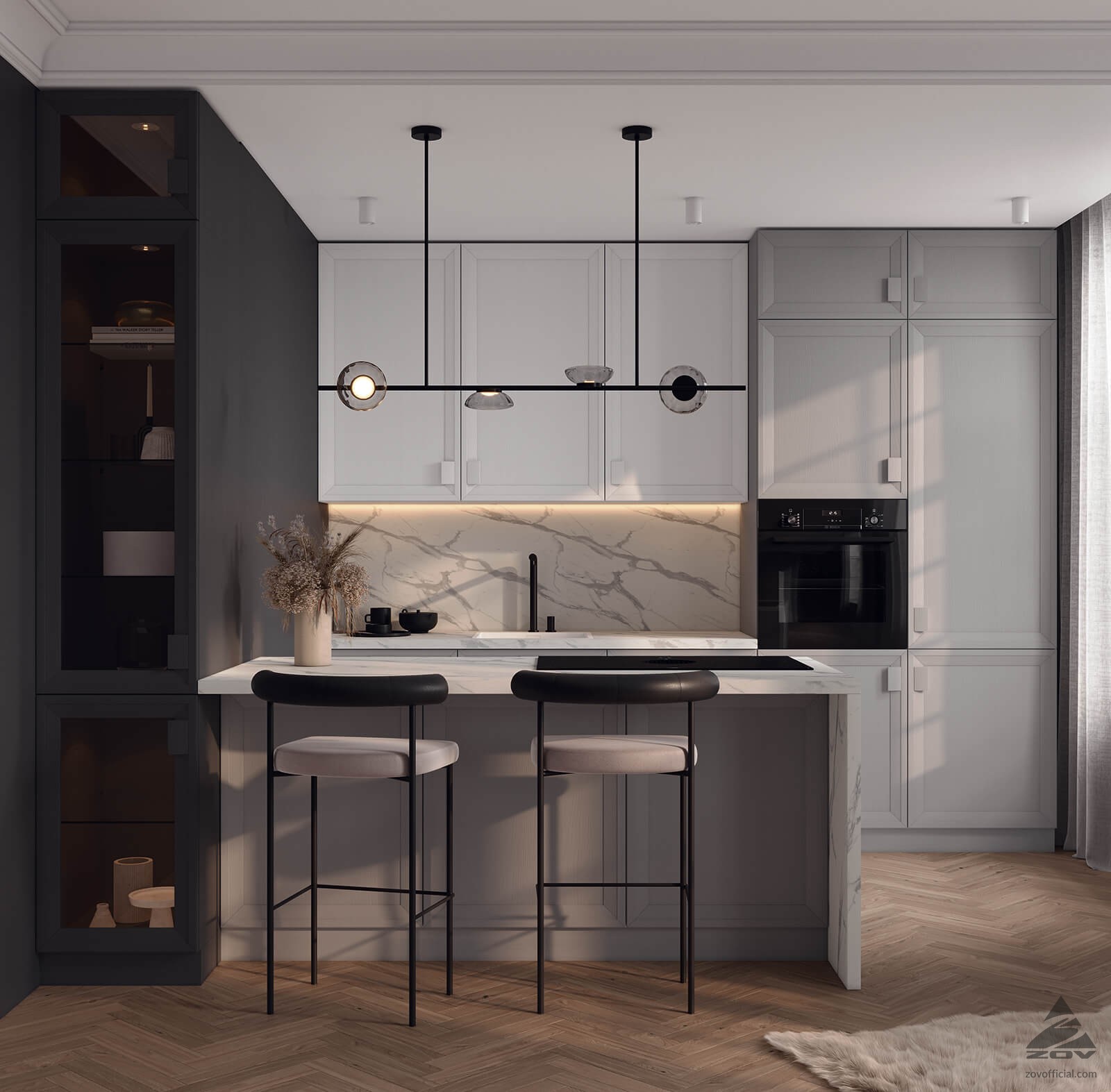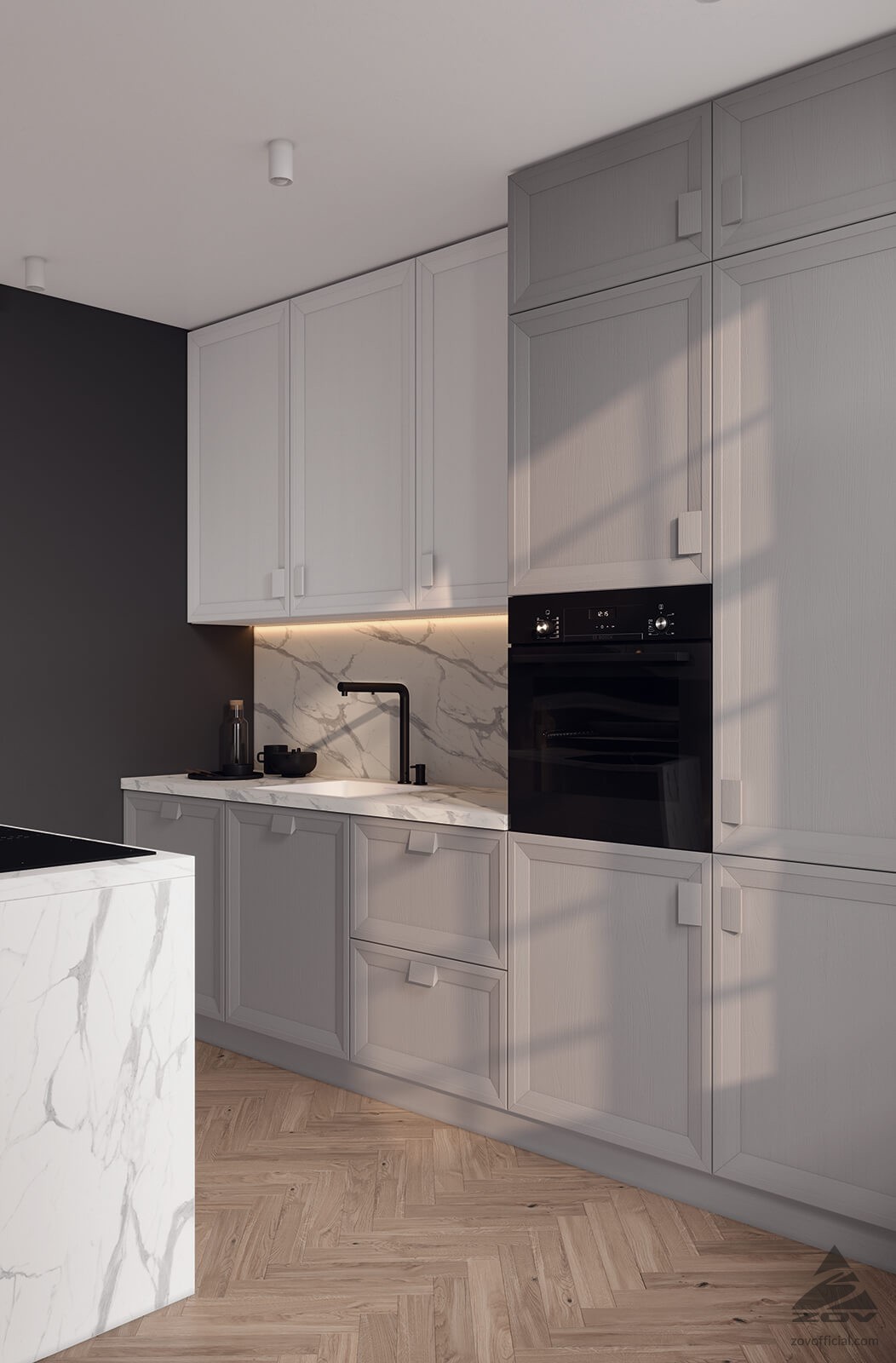 ФАСАДЫ Т546 Натуральный ясень, цвет NCS S 0500-N / 120 / 125 СТОЛЕШНИЦА Пластик HPL, 38 мм, декор Статуарио