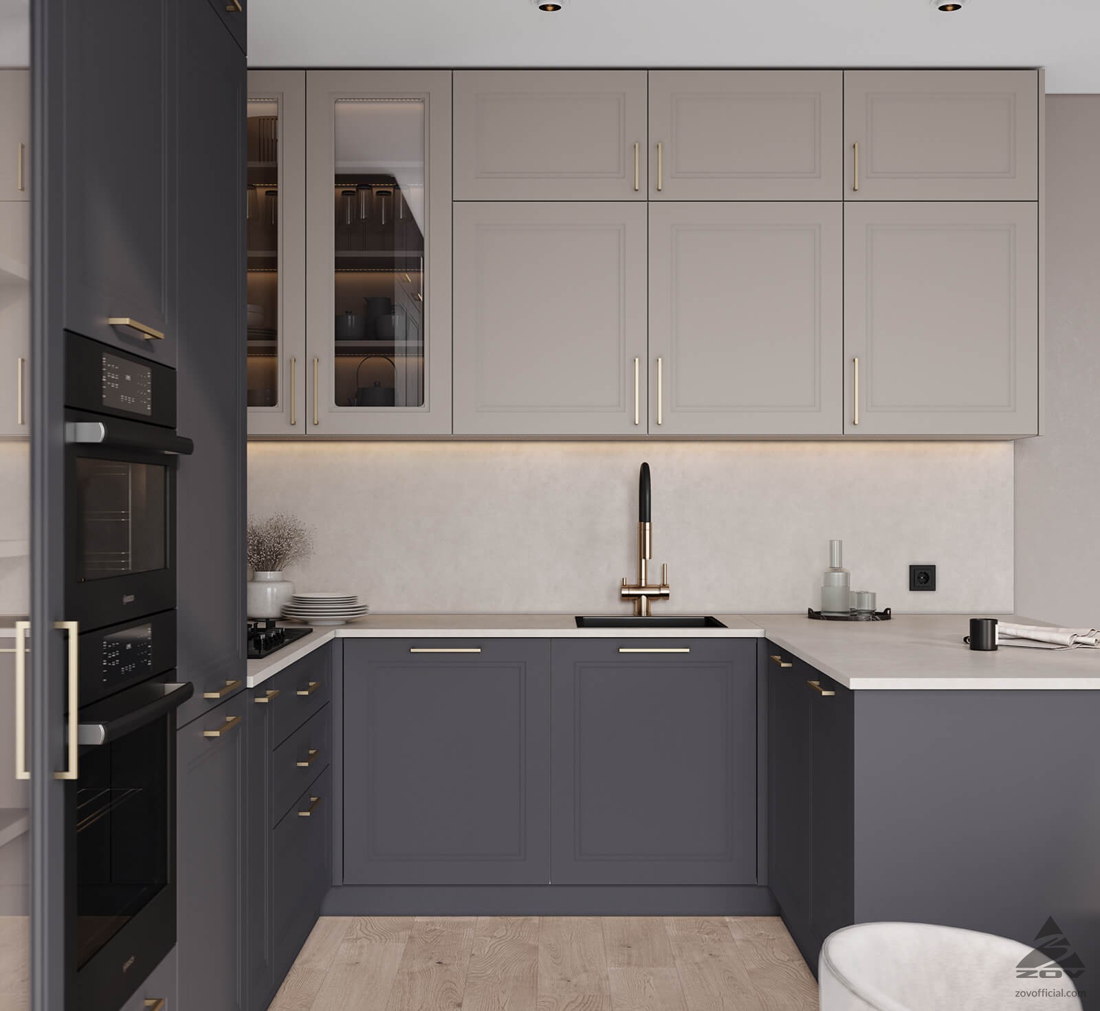 Кухня Эйвон 3,0‑2 (Жасмин PET / Кубанит Серый)
