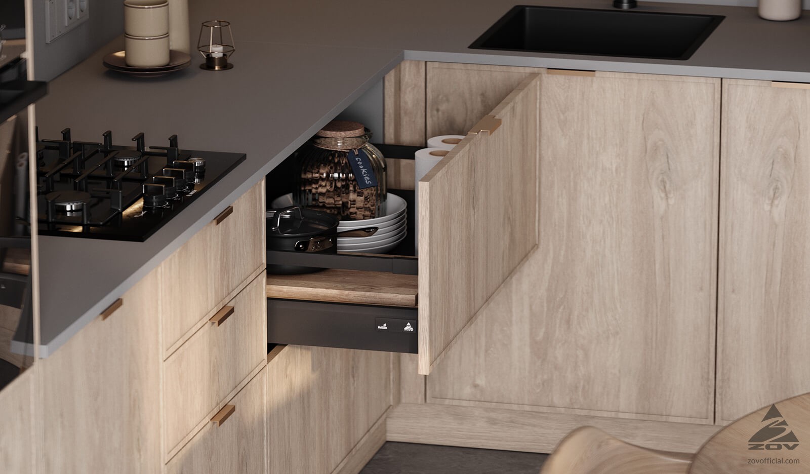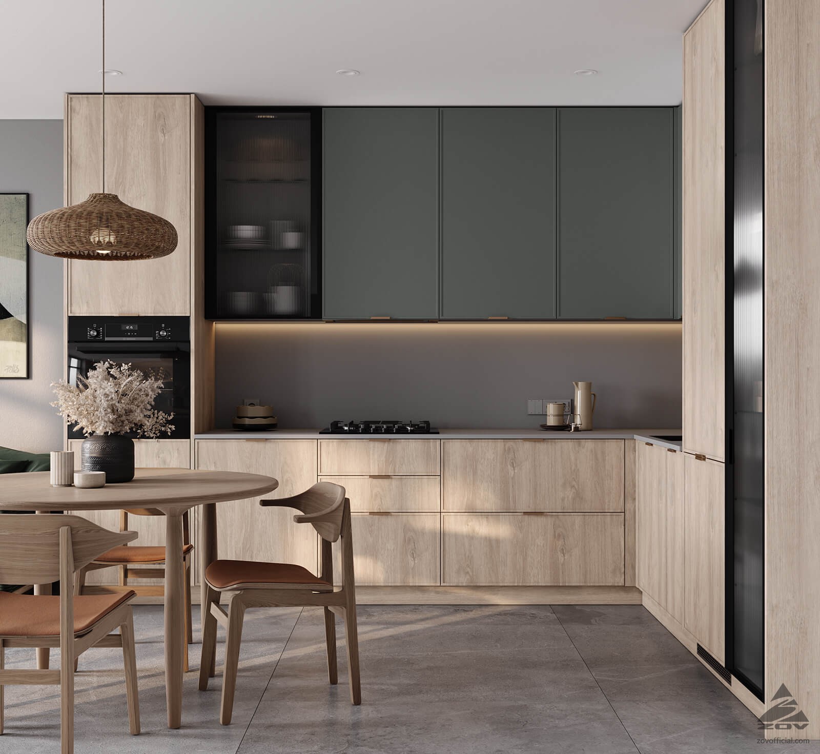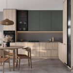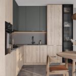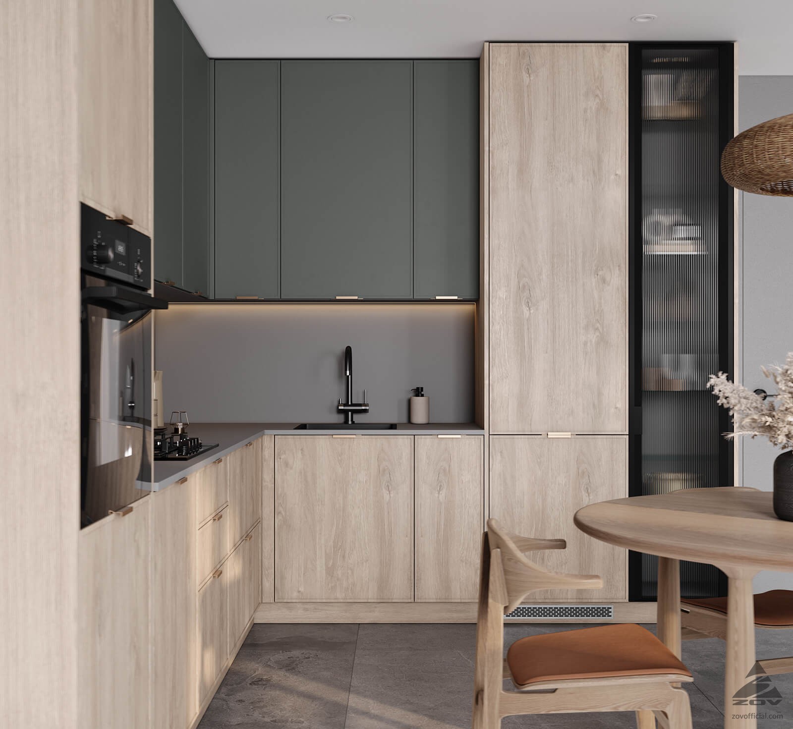 ФАСАДЫ Хаген (МДФ / ПВХ), цвет Дуб Винтаж / Хайленд Грин СТОЛЕШНИЦА Акрил Fenix NTM, 20 мм, цвет Серый NTM (0752)