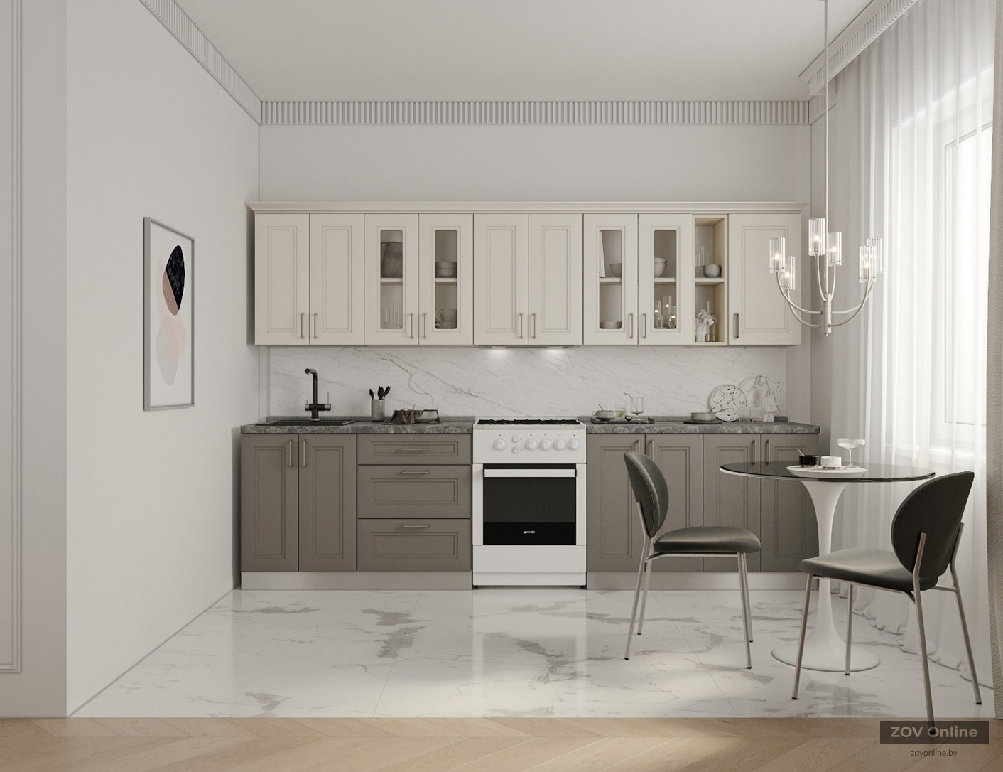 Кухня Эйвон 3,0‑1 (Жасмин PET / Кубанит Серый)