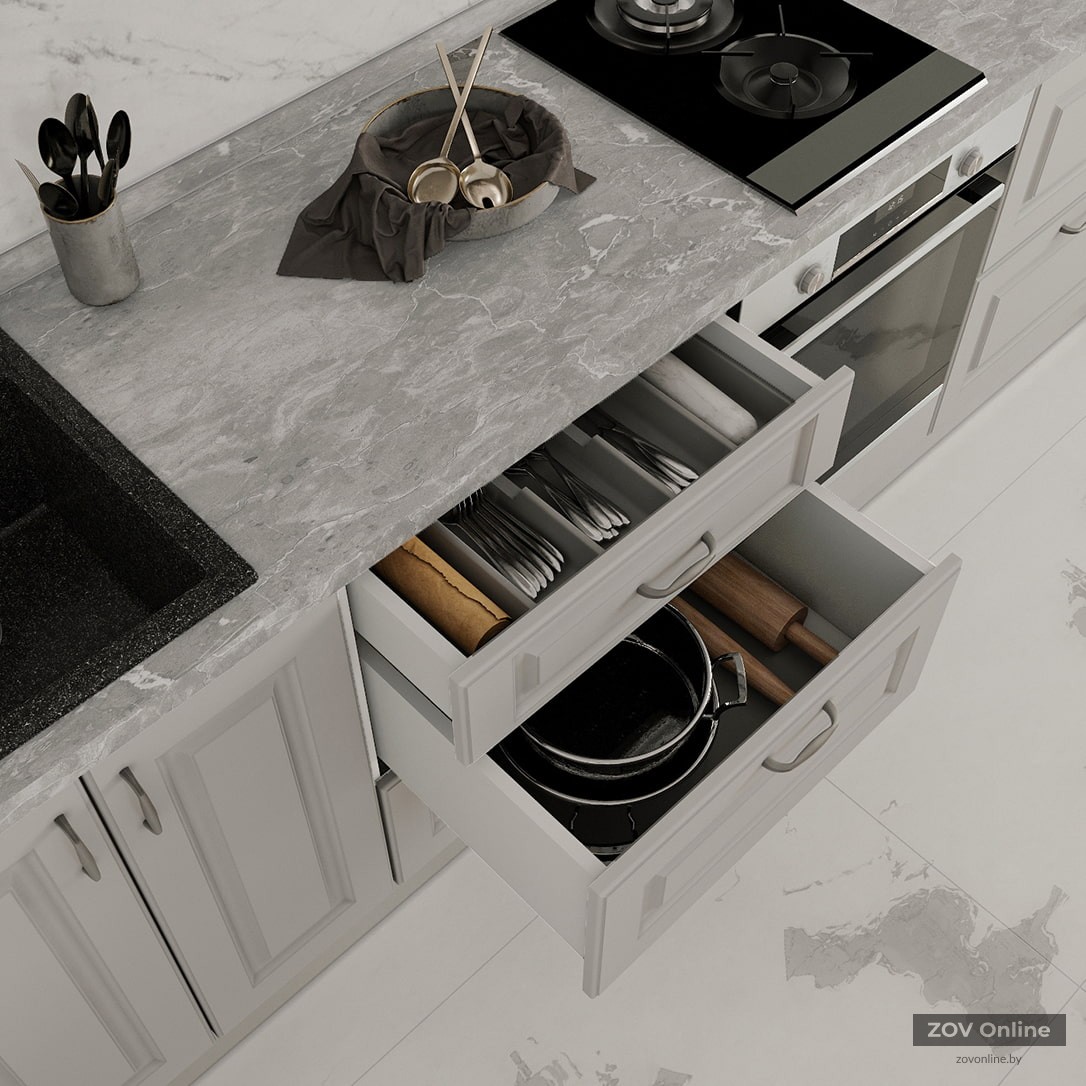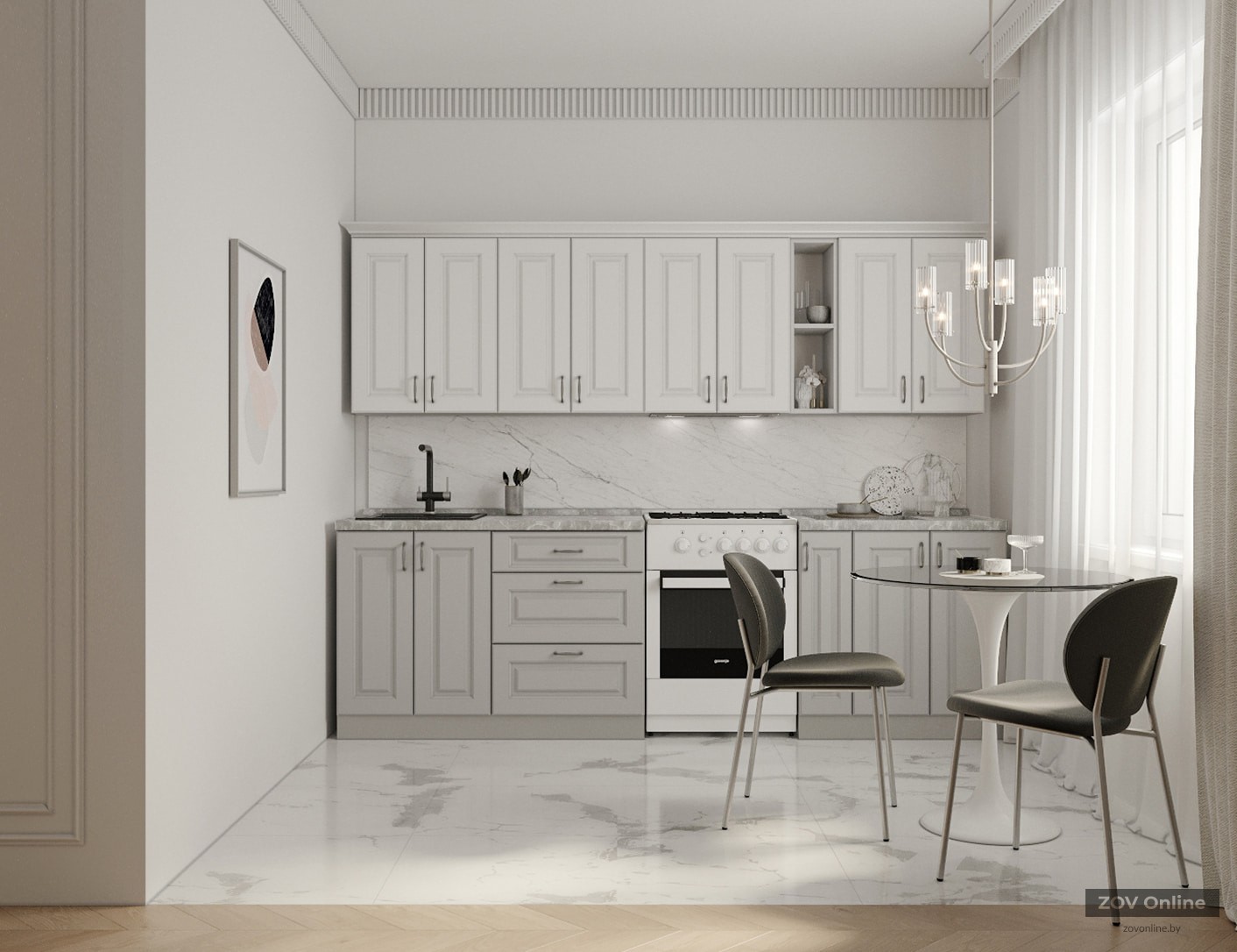 Кухня Лонгфорд 2,6‑1 (Белый Супермат / Сильвер)