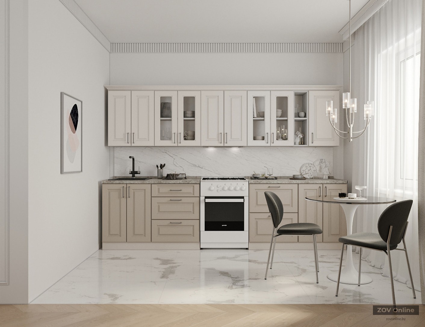 Кухня Лонгфорд 3,0‑1 (Античный Белый / Сатин Бежевый)
