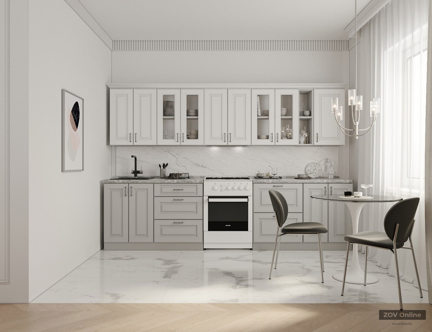 Кухня Лонгфорд 3,0‑1 (Белый Супермат / Сильвер)