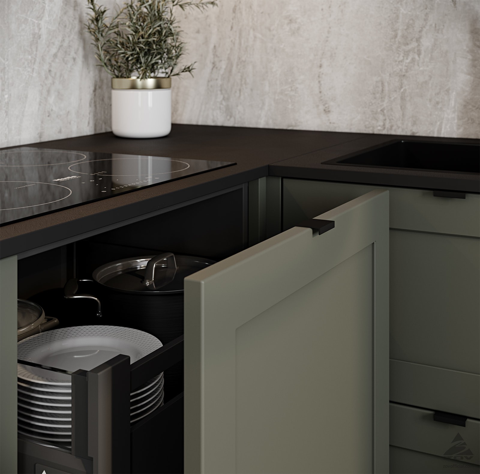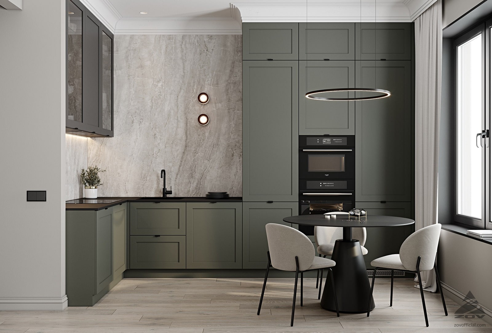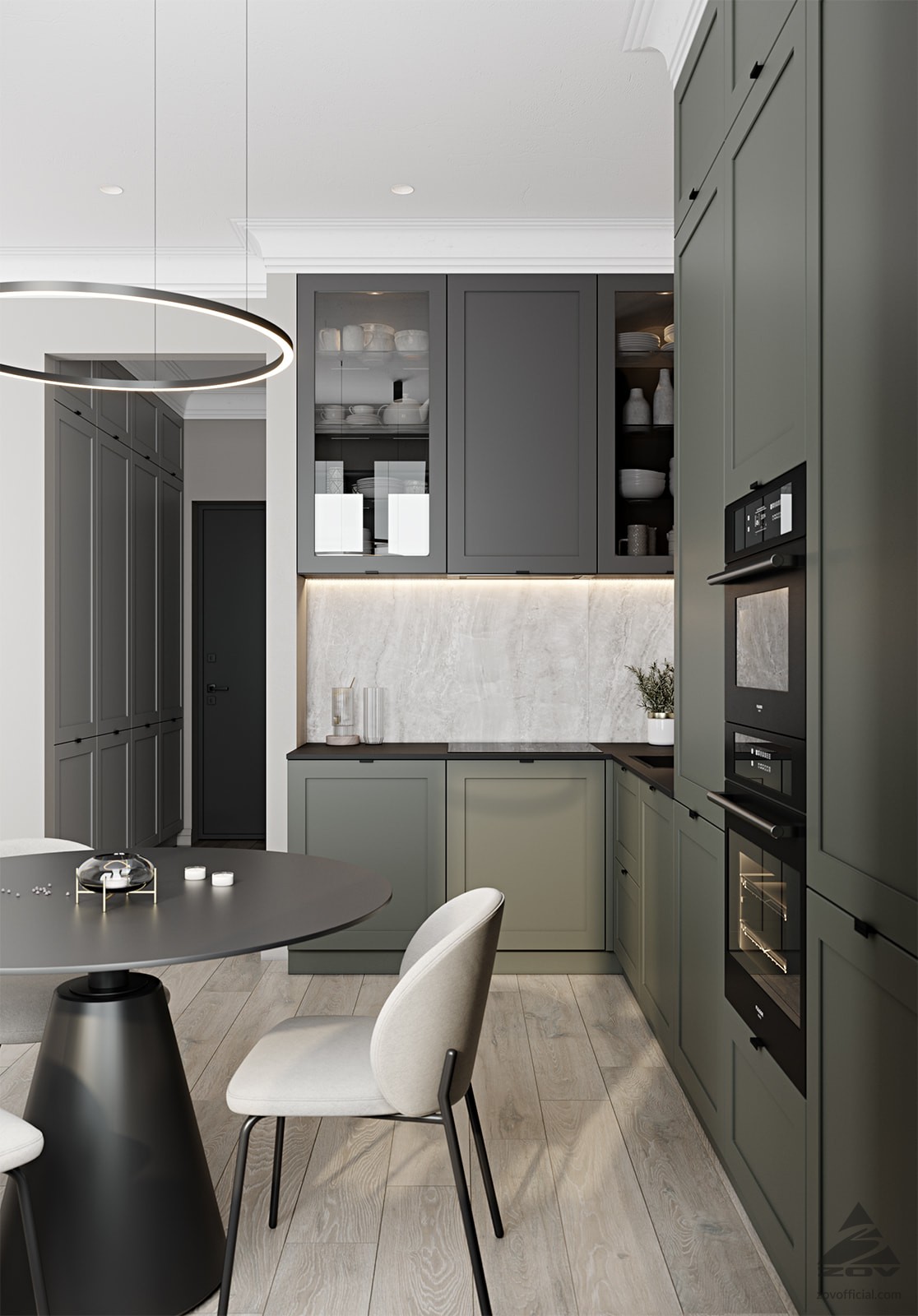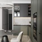 ФАСАДЫ Ливон (МДФ / ПВХ), цвет NCS S 5010-B90G Матовый / NCS S 6000-N Матовый СТОЛЕШНИЦА Пластик HPL, 20 мм, цвет Вулкано