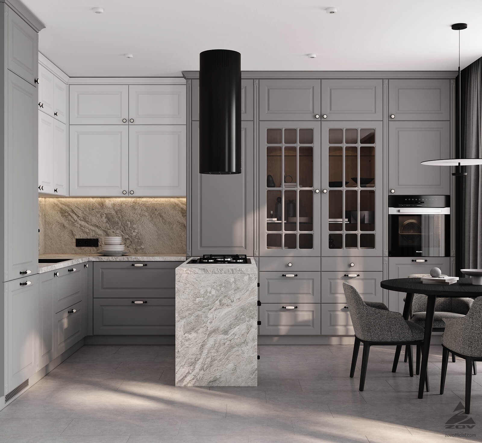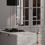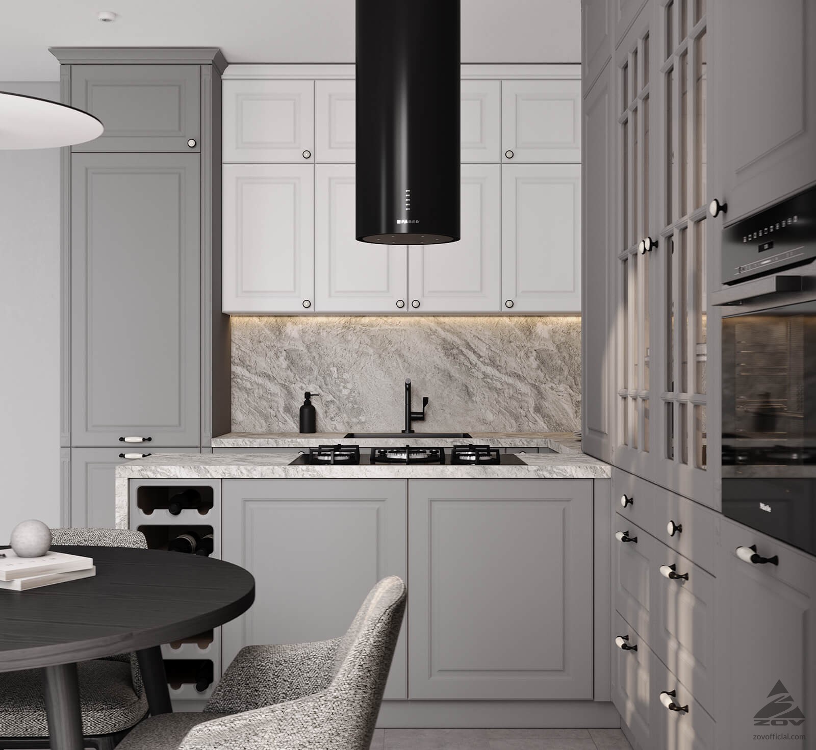 ФАСАДЫ Лонгфорд (МДФ / PET), цвет Белый PET / Серый PET СТОЛЕШНИЦА Пластик HPL, 38 мм, декор Зевс