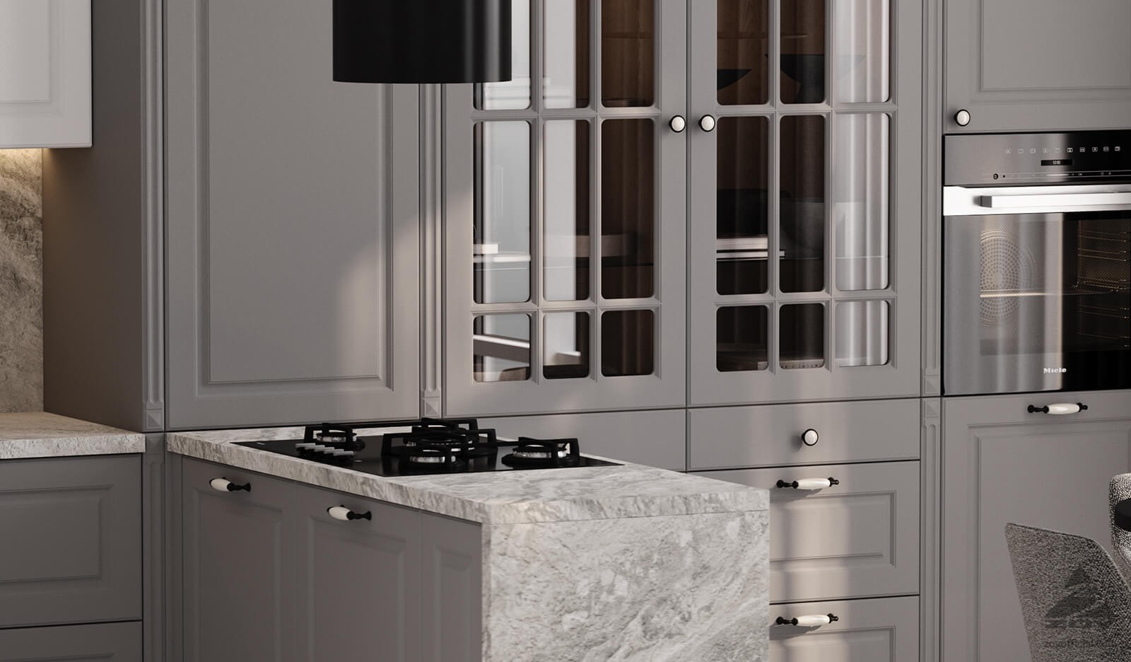Кухня Эйвон 3,0‑2 (Жасмин PET / Кубанит Серый)