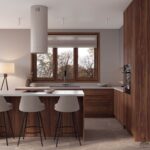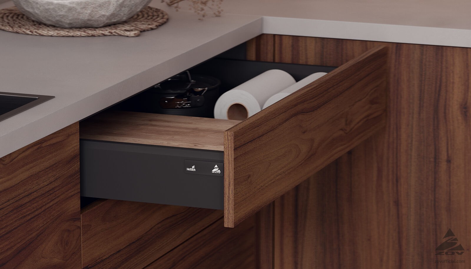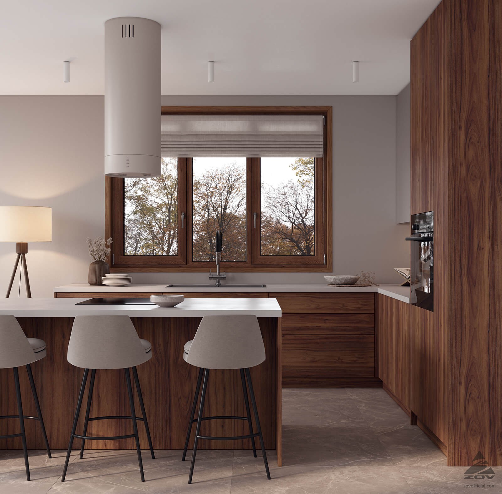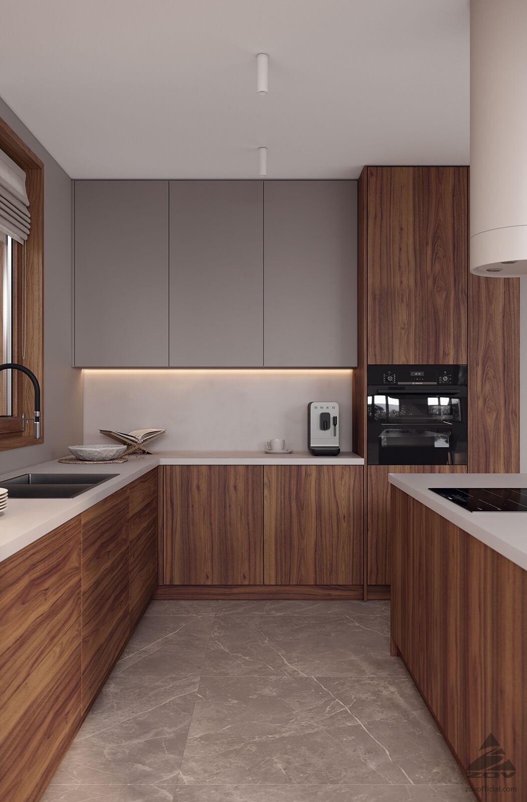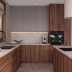 ФАСАДЫ Т119В/Г Шпон дерева (Орех Американский) / пластик HPL, цвет Грей СТОЛЕШНИЦА Пластик HPL, 38 мм, декор Артстоун