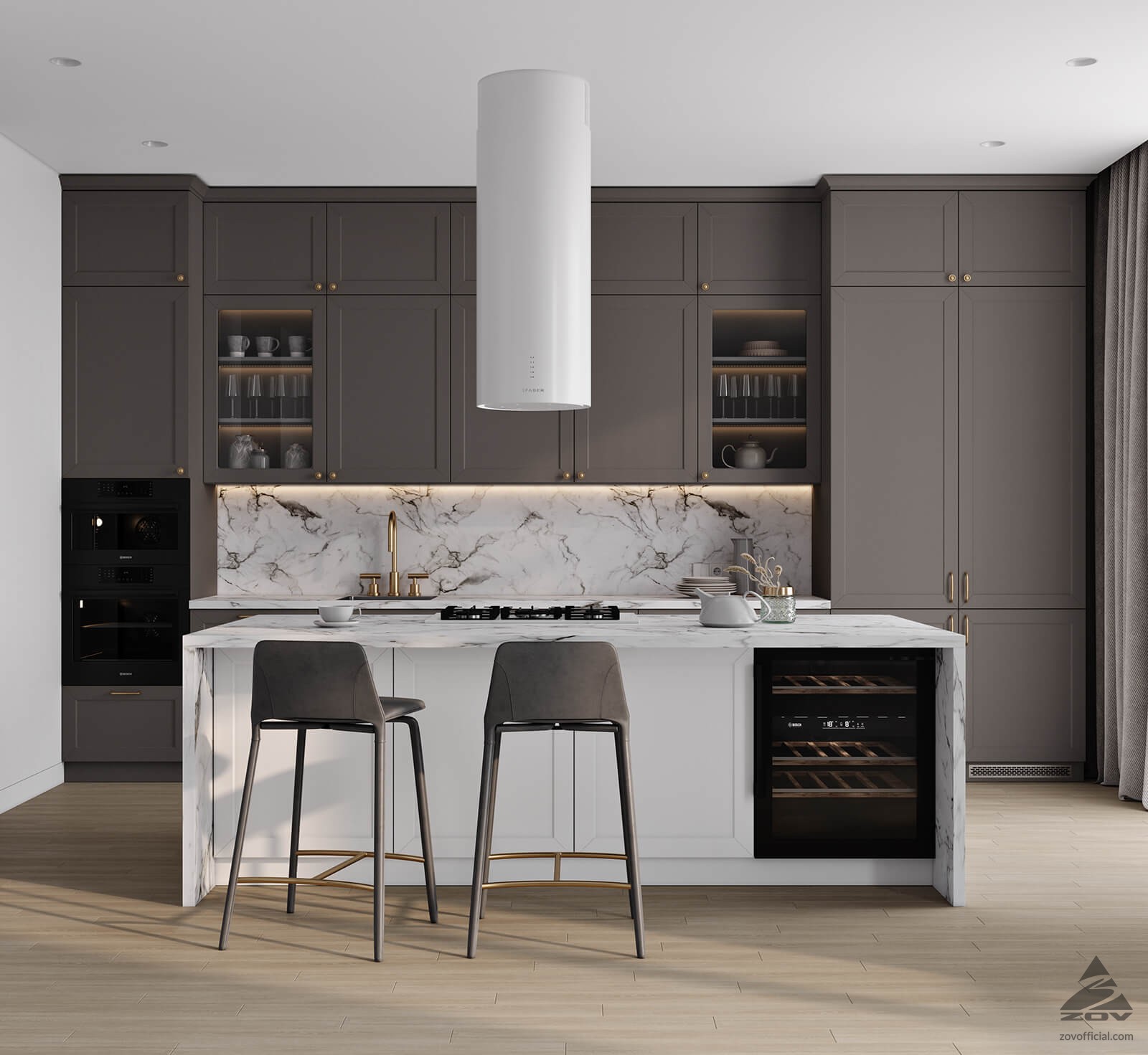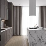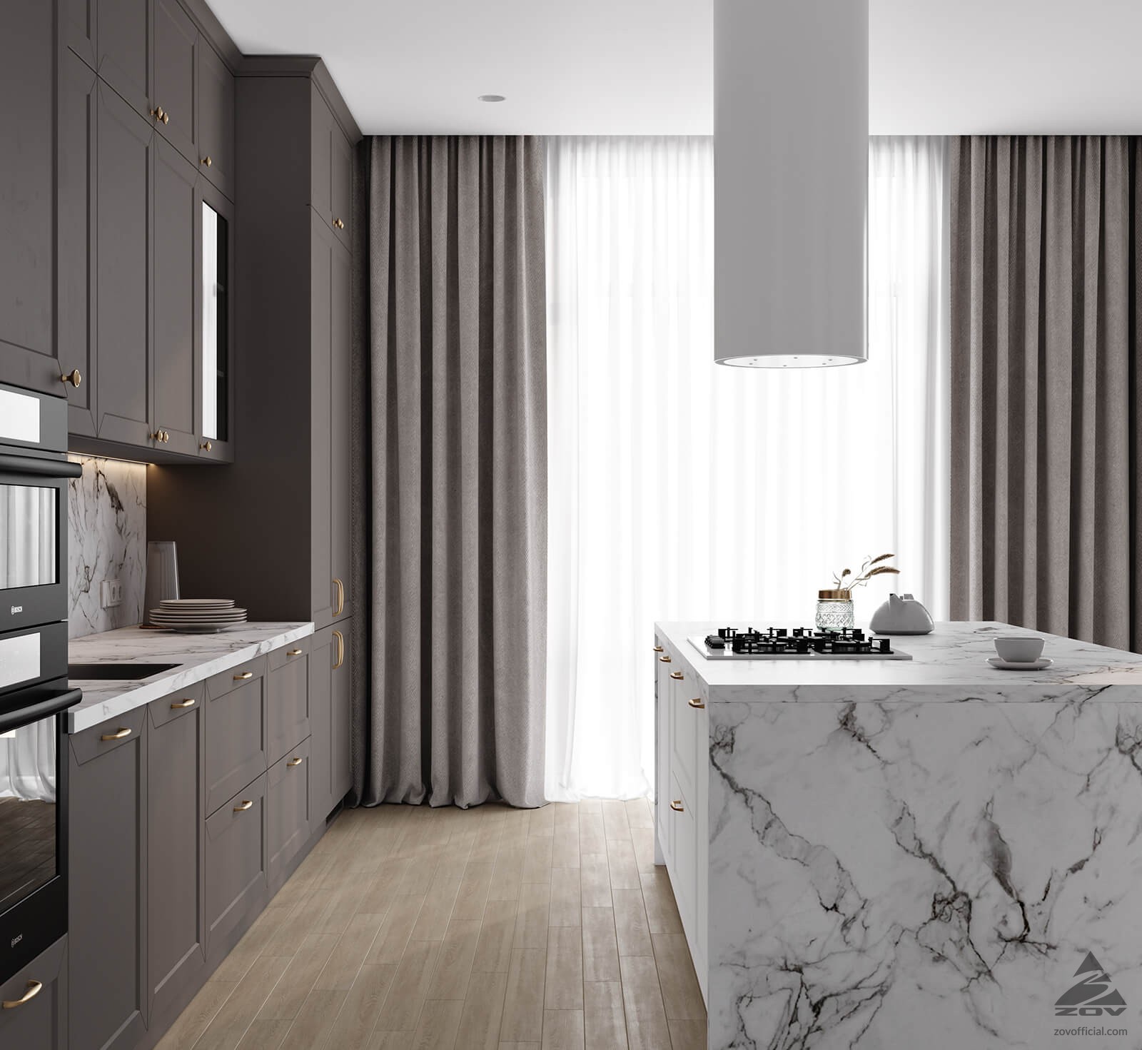ФАСАДЫ Ньюарк (МДФ / PET), цвет Вольфрам PET / Белый PET СТОЛЕШНИЦА Пластик HPL, 38 мм, декор Мрамор