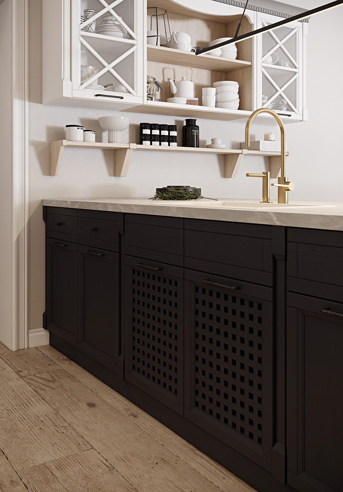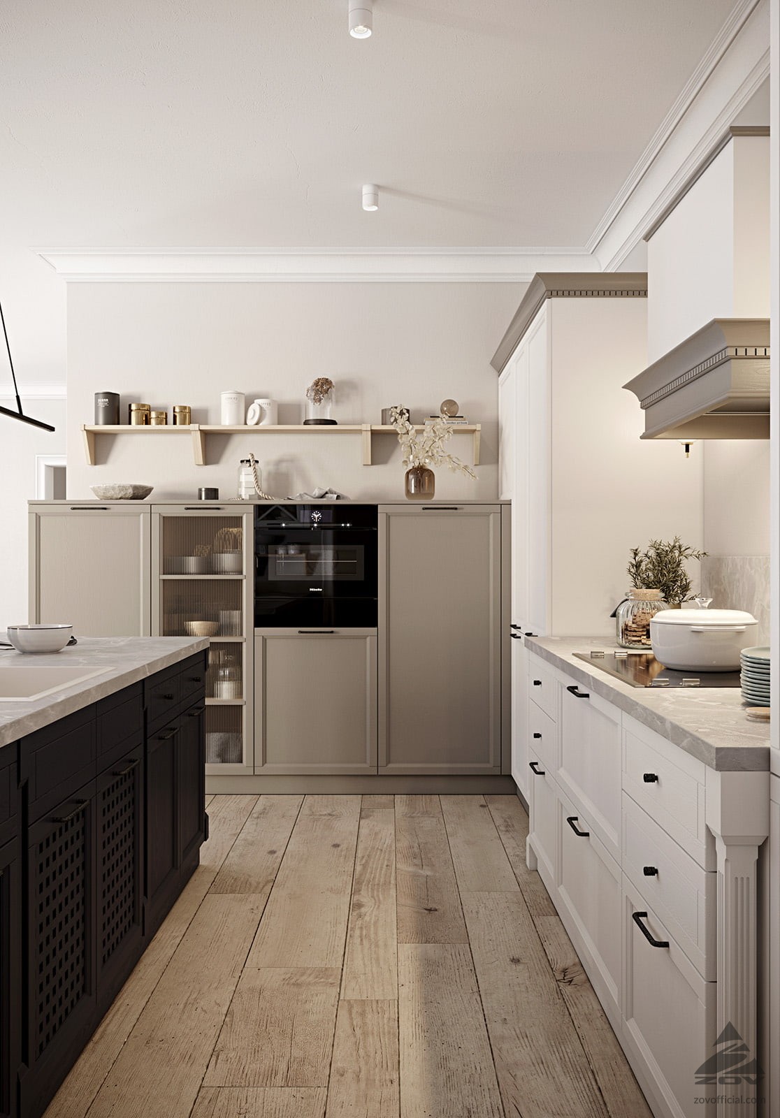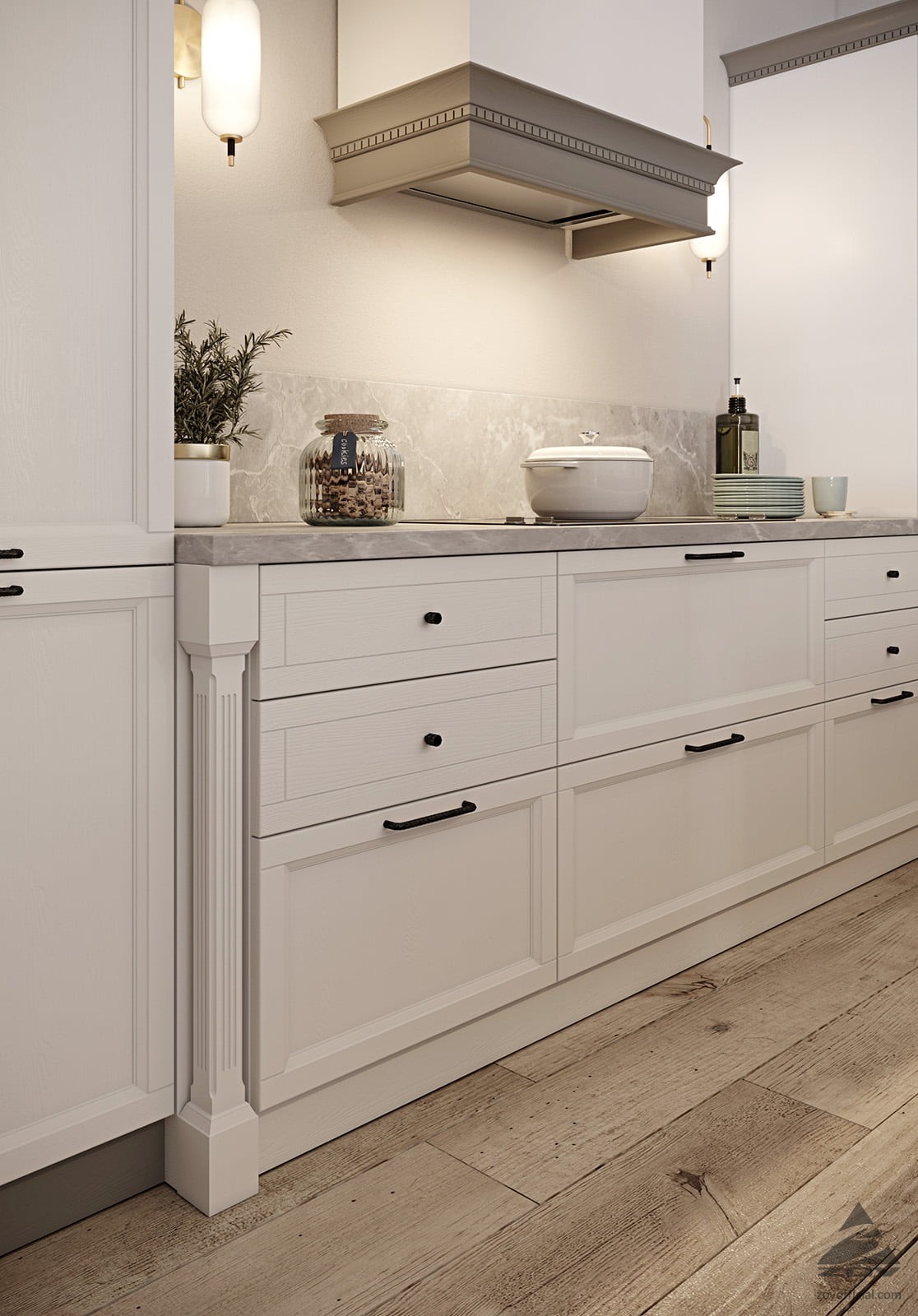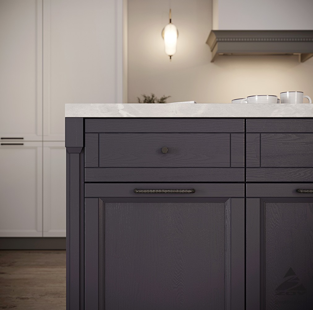 ФАСАДЫ Т561 Натуральный ясень, цвет 143 / 124 / NCS S 7010-R50B СТОЛЕШНИЦА Пластик HPL, 38 мм, цвет Мрамор Вальмасино Светло-серый